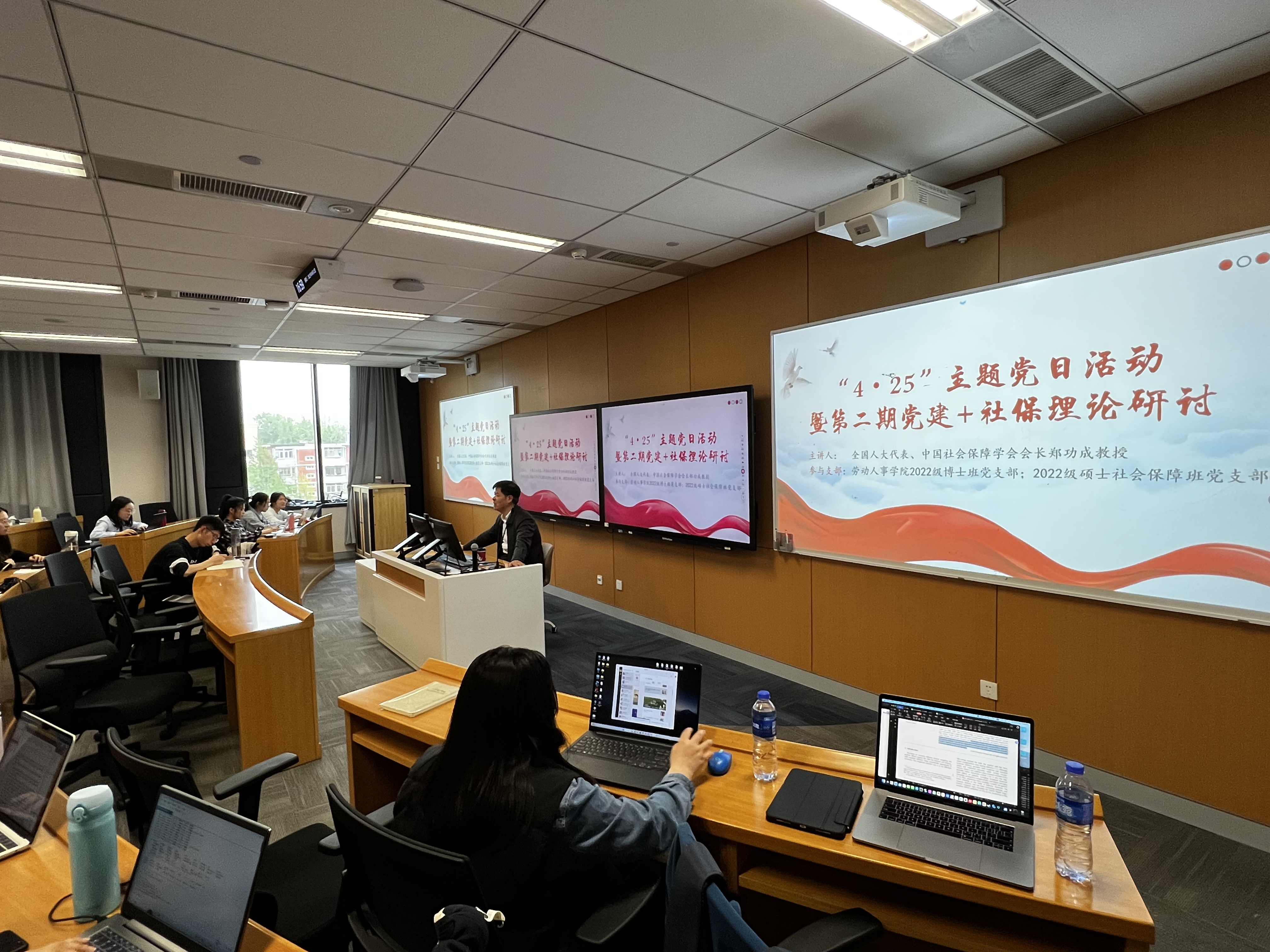 4月12日,支部以十四届全国人大代表、中国社会保障学会会长、yl23455永利教授郑功成开设的中国社会保障专题讨论课为契机开展此次活动。郑功成首先介绍了参加两会的经历与所提议案主要内容,他表示:“社会保障始终是两会聚焦的重点议题,其热度从未冷却过,原因在于社会保障与各大民生问题及人民的安全感紧密相关,对于社会保障专业的研究者而言,要坚持以问题为导向、坚持调查研究,发现并解决人民关切的社保问题。”