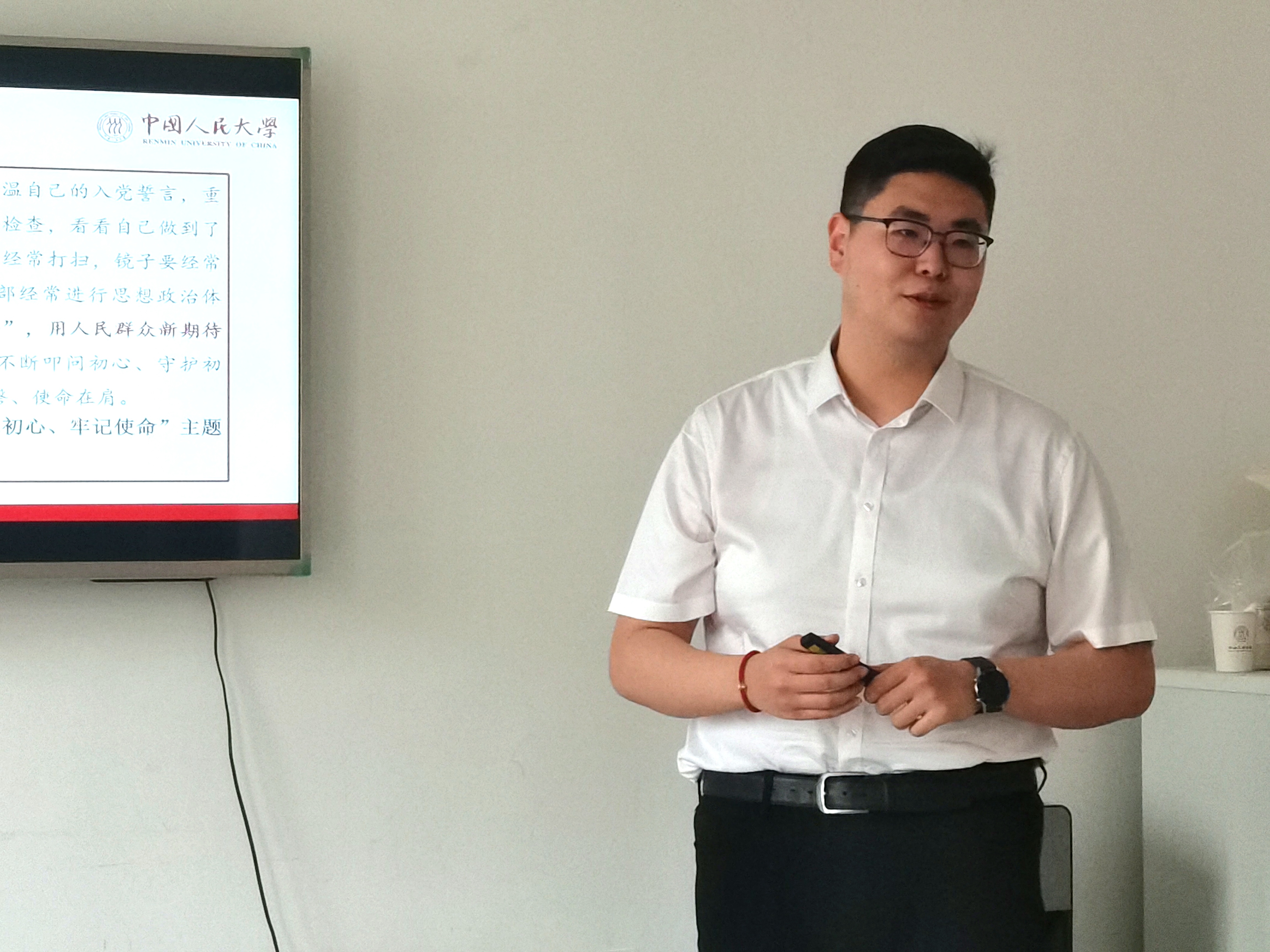 2023年5月17日下午,yl23455永利开展以“学思想悟原理,育栋梁争先锋”为主题的第二期员工读书班,深入学习贯彻习近平新时代中国特色社会主义思想主题教育。本次读书班在求是楼120主题教育专用学习室举行,读书内容为《中国共产党章程》。2021级硕士社会保障班党支部纪检委员姜龙钰进行领学。