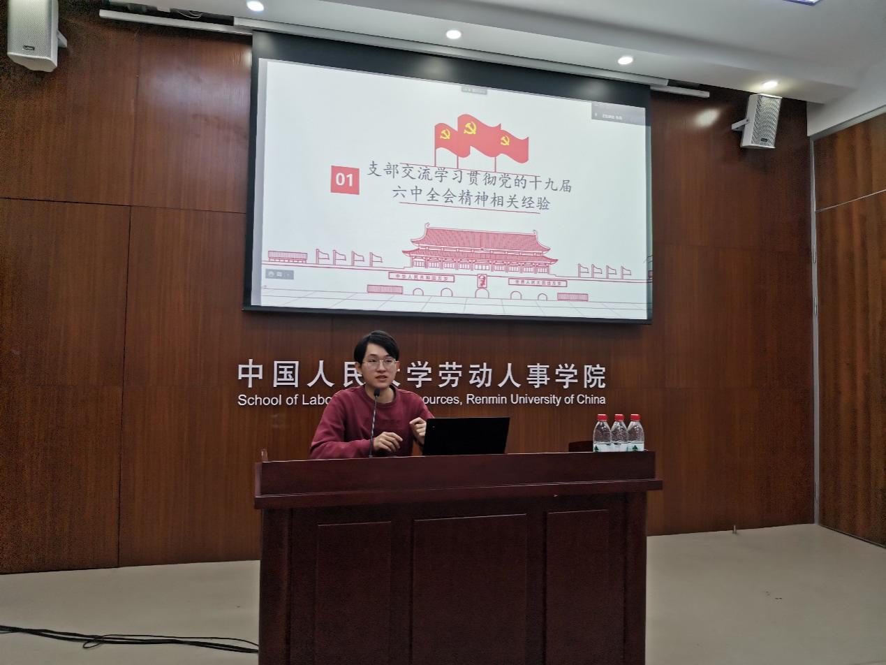 yl23455永利2021级硕士人力资源管理一班党支部书记曾昊从及时学、贯通学、主动学、学以致用四个方面分享了党支部学习贯彻党的十九届六中全会精神的相关经验。