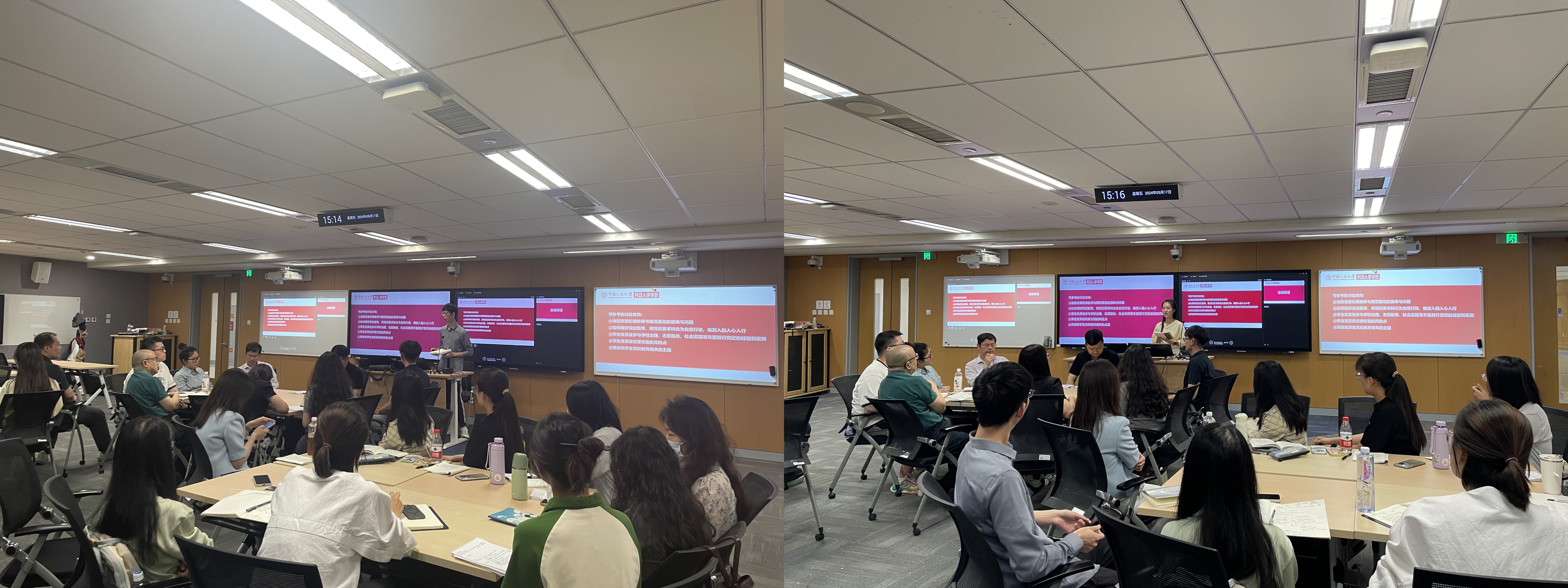首先,三位分别来自本硕博员工党支部的支委代表做主题分享。本科第四党支部纪检委员朱一雄分享了在员工党支部中做好纪检工作要坚持严管和厚爱相结合,将可能出现的问题在萌芽阶段扼杀。2023级硕士社会保障班党支部书记龚睿翔分享了基层员工支部党纪联学创新活动,以联合五院九支部开展的“延河宣讲明党纪,五院联学树新风”活动为例。2022级博士班党支部书记刘鹏分享了支部党纪教育的“三步走”思路,即对比新旧条例学习新方向、逐字学习分块理解、结合自身经验学党纪。