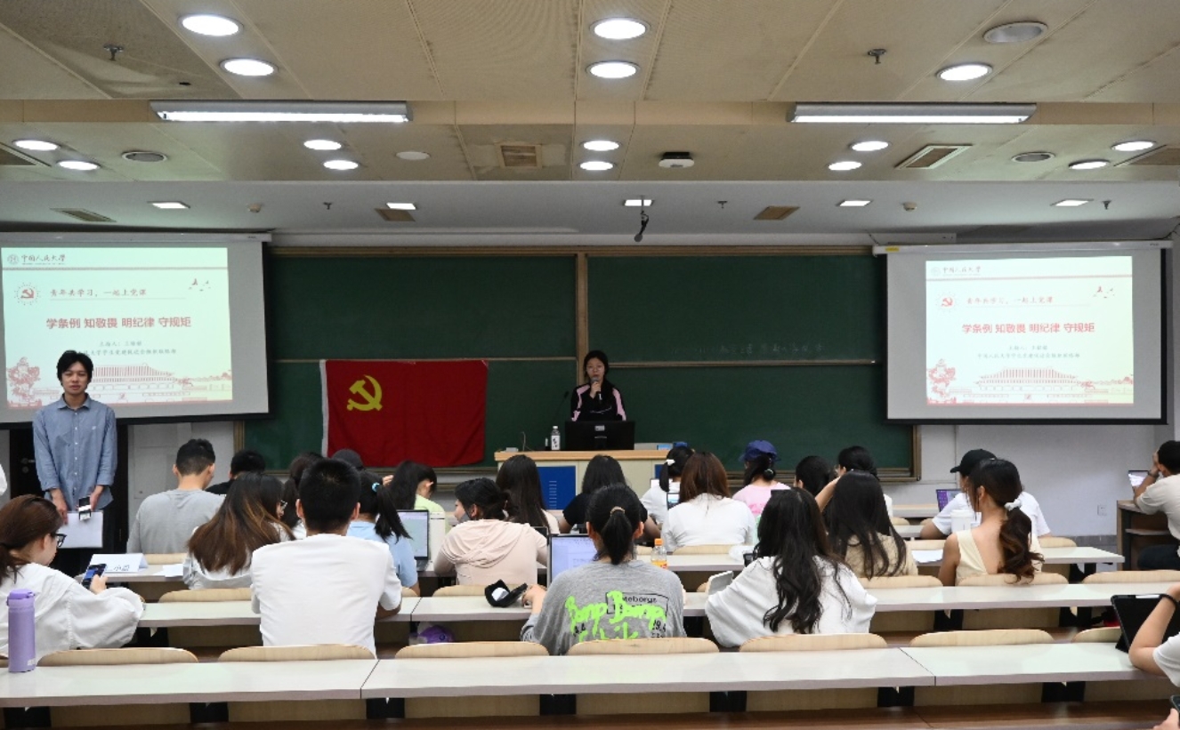 2024年5月18日上午,yl23455永利本科第三党支部与农业与农村发展公司2023级硕士3班党支部在明德法学楼0301教室联合开展“一起上党纪课”主题党日活动,深入进行党纪专项教育学习。本次活动由校员工党建促进会王铭铭同志主持,校员工党建促进会研究室张浩泽同志做主题分享。