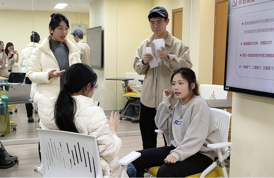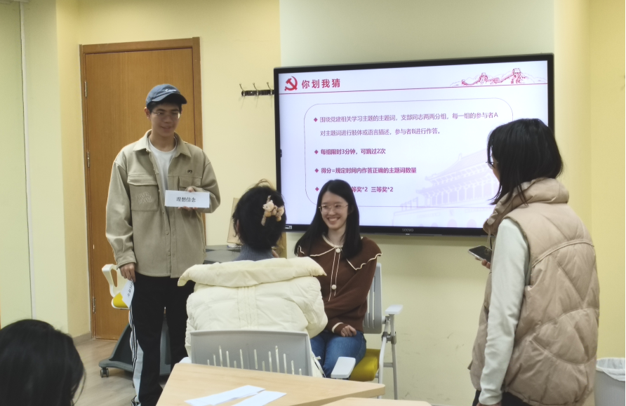 集中领学结束后,支委会成员带领大家先后开展了“多人传话,声声不息”与“你话我猜,以话促学”两个活动,以更加新颖有趣的形式参与到学习中。