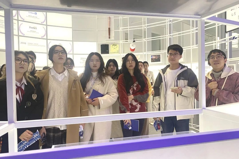 公司师生在联想未来中心三层展厅内,亲身体验了联想天津工厂高度智能化的生产车间以及先进的自动化智能笔记本生产线,深入了解了现代制造业的前沿技术和高效生产流程。