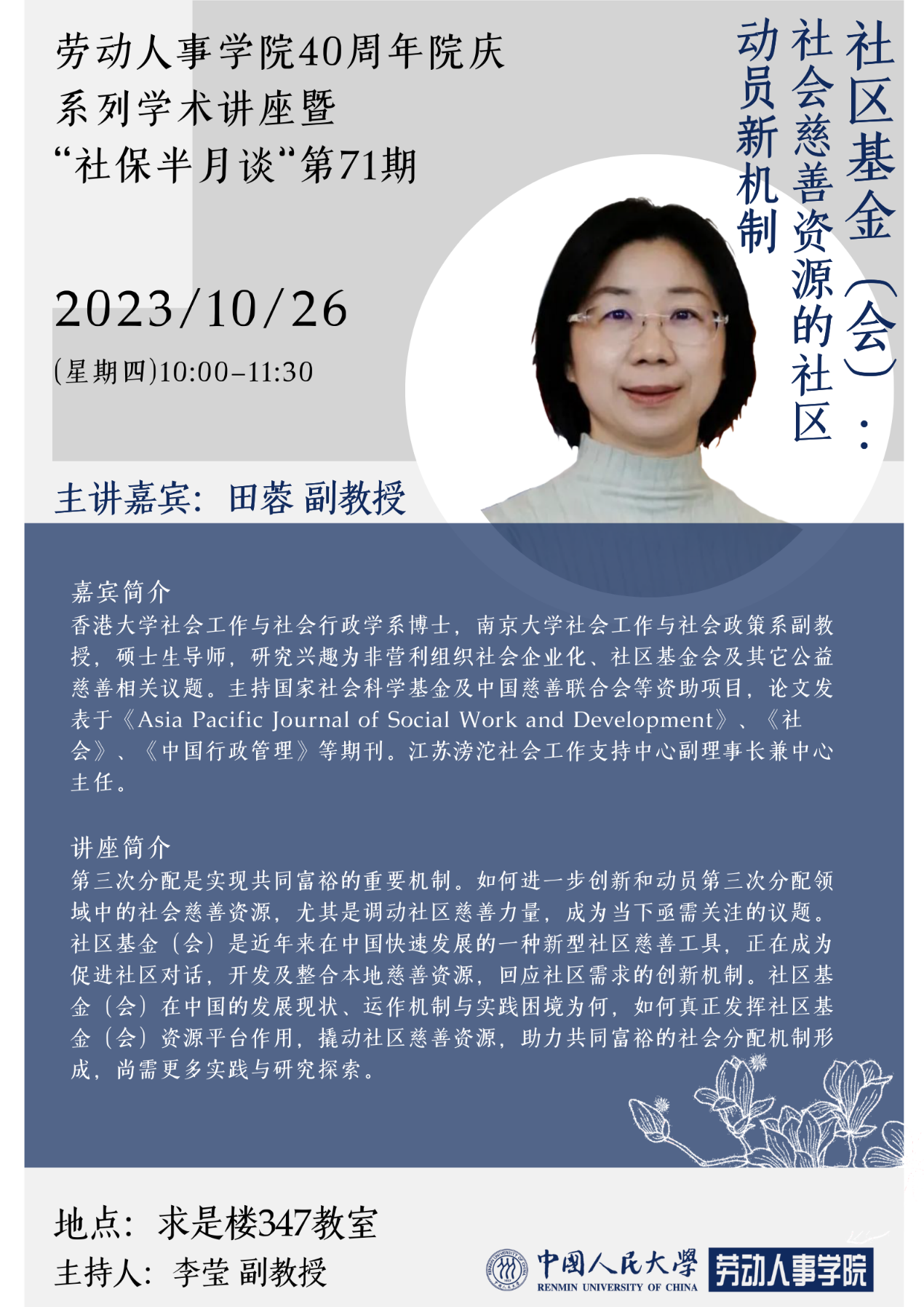主讲嘉宾:田蓉 副教授