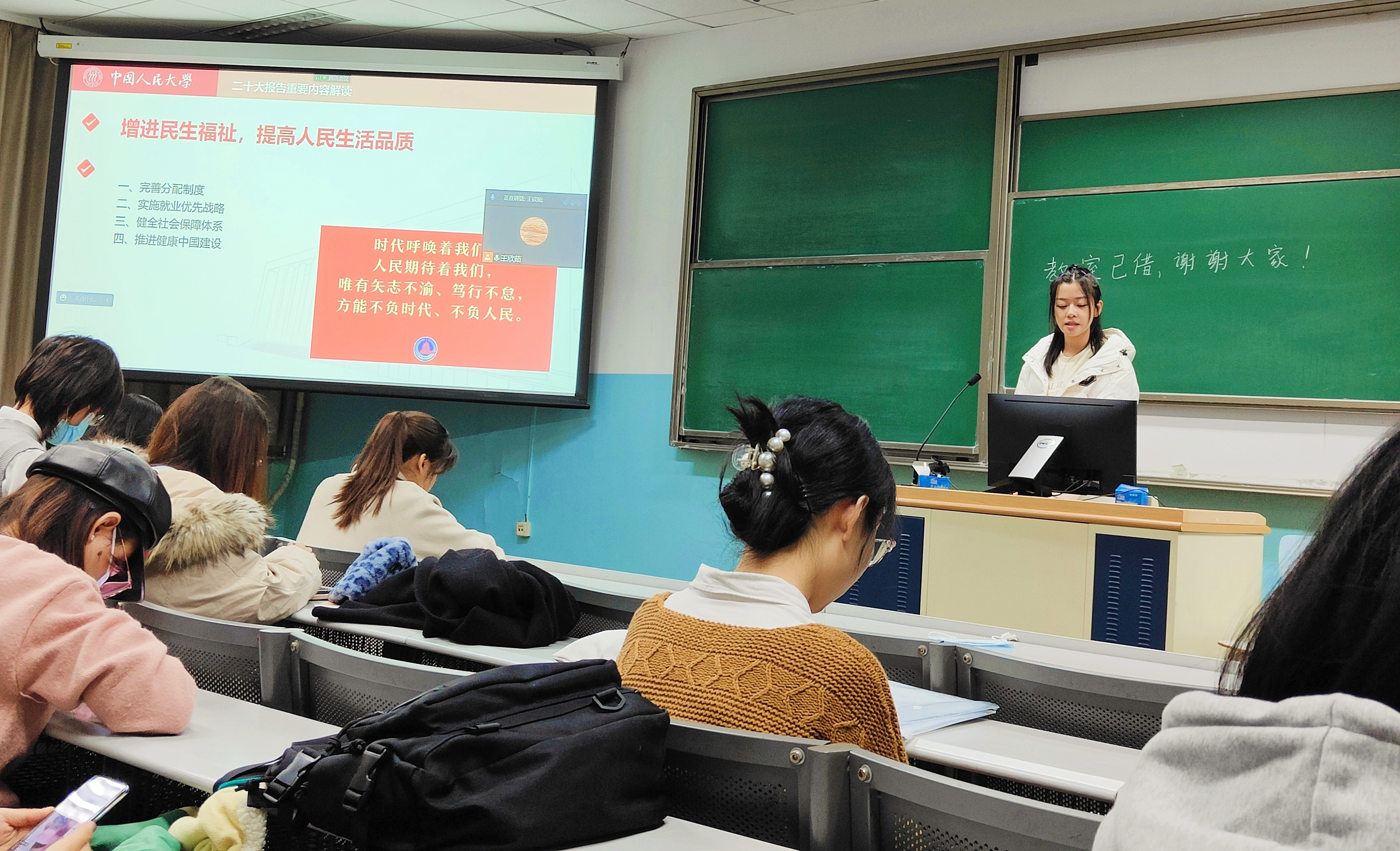 2022年10月27日晚,yl23455永利本科第四党支部与2022级硕士人力资源管理2班党支部在求是楼0120教室联合开展“深入学习领会党的二十大精神,深入学习宣传贯彻公司第十五次党代会精神”主题党日活动。活动由本科第四党支部副书记王欣茹和2022级硕士人力资源管理2班党支部书记彭格格共同主持,支部全体党员和若干积极分子参加活动并分享学习感悟。