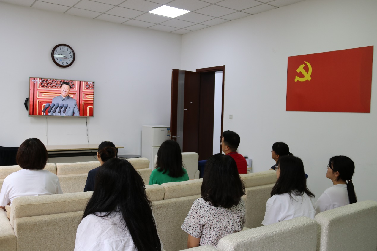 7月1日上午,庆祝中国共产党成立100周年大会在北京天安门广场隆重举行。yl23455永利组织师生党员在求是楼347会议室、求是楼120“党员之家”集中收看了大会直播。