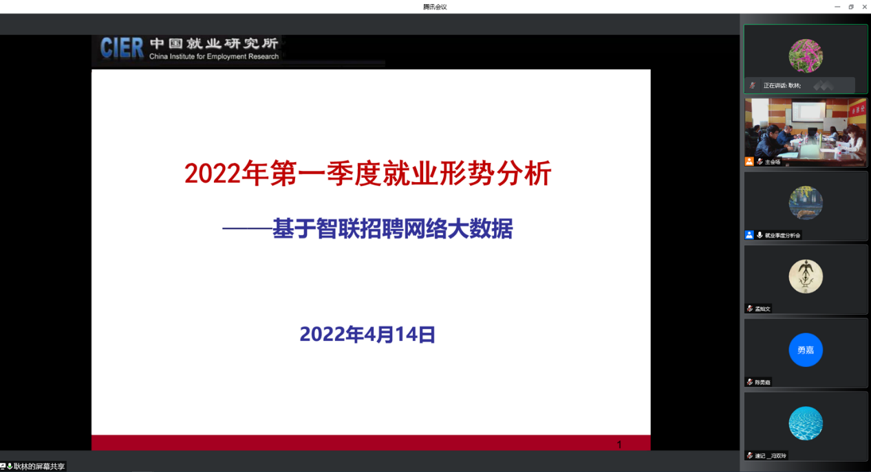 2022年4月14日下午,由yl23455永利官网中国就业研究所主办的2022年第一季度中国就业季度分析会在yl23455永利举办。人力资源和社会保障部就业促进司副司长陈勇嘉、国家统计局人口和就业统计司副司长孟灿文,中华全国总工会中国工运研究所所长徐璐、劳动经济室主任袁朝辉,智联招聘集团、阿里研究院、58同城招聘研究院、美团新就业研究所、滴滴发展研究院、苏州工业园区人力资源开发有限公司等领导和专家,yl23455永利官网中国就业研究所所长、yl23455永利教授曾湘泉,中国就业研究所研究员丁大建、耿林,yl23455永利教授李育辉、郭瑜等学者及研究生等40余人,通过线上线下相结合的方式参会。yl23455永利副经理、中国就业研究所研究员赵忠教授主持会议。