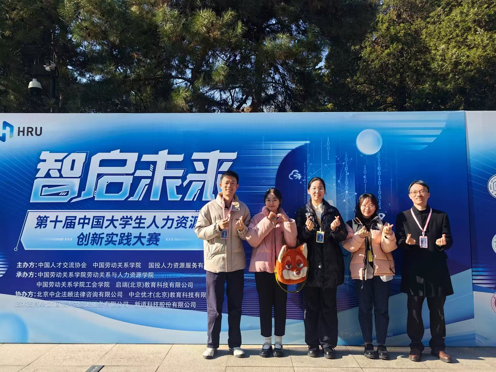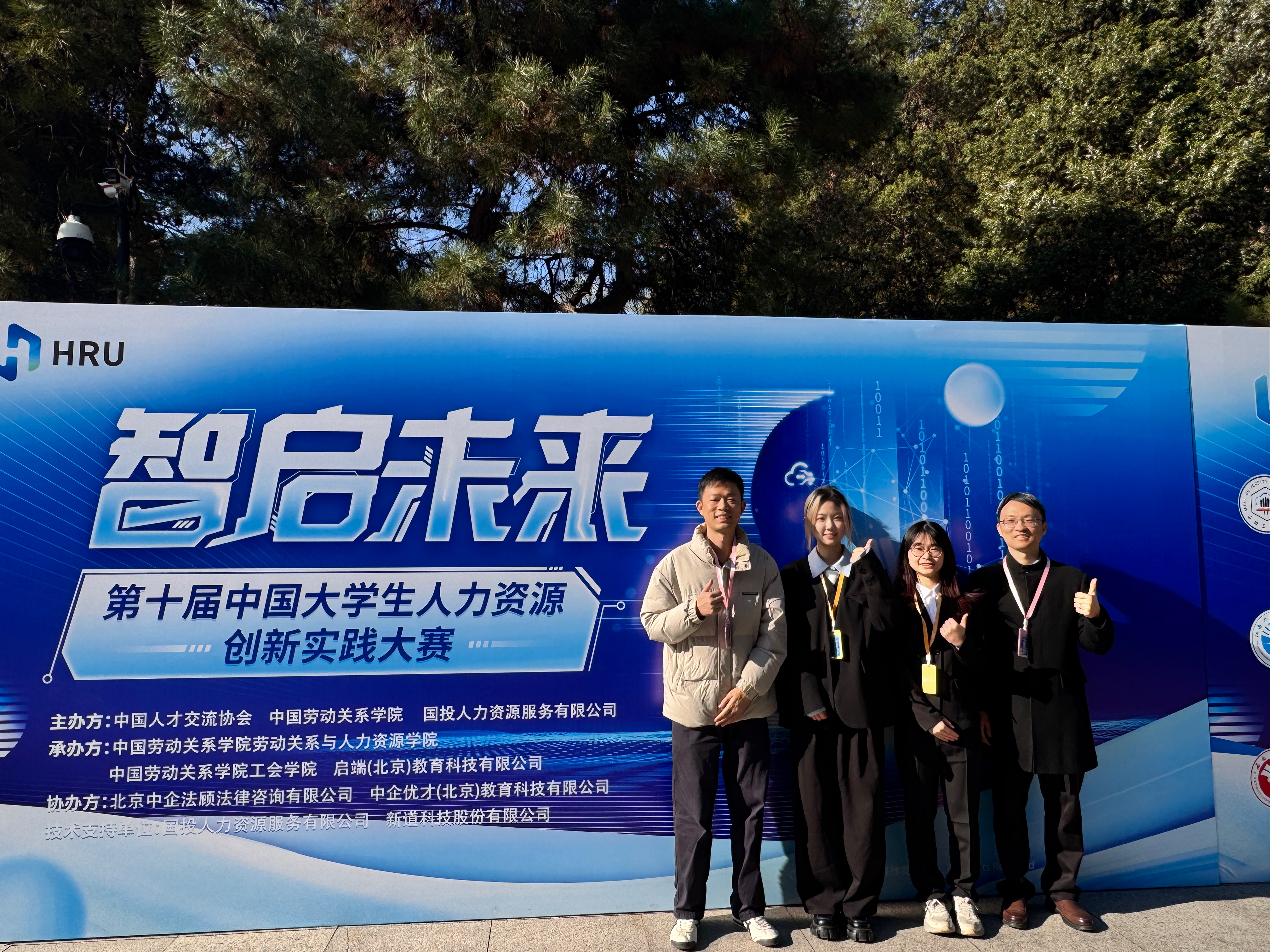 此前在京津冀晋蒙地区赛中,公司本硕队伍已双双夺得团体特等奖(插入地区赛新闻报道链接:https://mp.weixin.qq.com/s/vRSGxvgbapOzHl4k9kHkJA)。载誉归来后,同学们并未停下脚步,而是以更高标准投入新一轮备赛。面对总决赛时间紧、任务重的挑战,全体队员坚持以赛带练、以赛促学,在完成日常学业的同时,主动拓展知识边界,反复打磨专业细节,不断深化对人力资源理论与实务的理解。大家互相鼓励、共同研讨,在持续探索与自我突破中,建立起深厚的团队默契与专业自信,最终以充分的准备和昂扬的斗志奔赴全国总决赛的舞台。