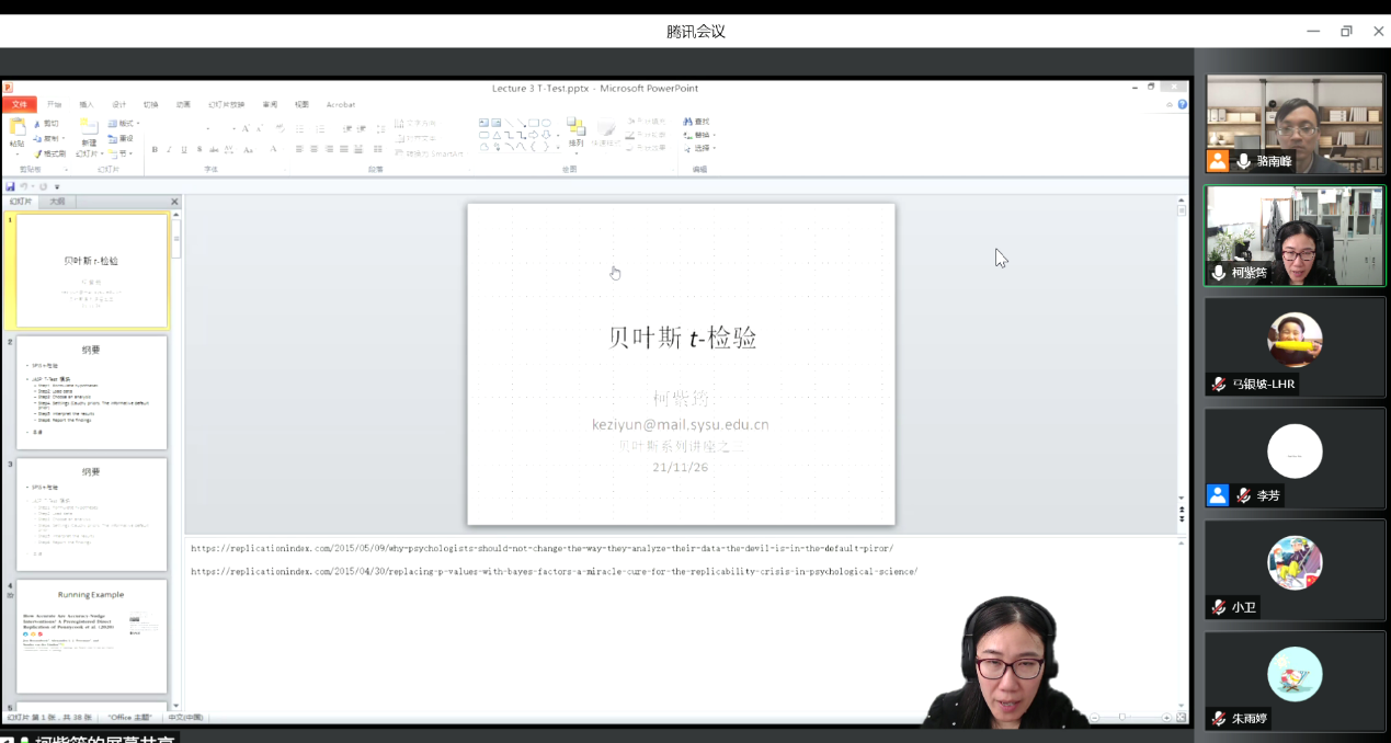 yl23455永利人力资源管理系贝叶斯分析系列讲座于2021年11月26日(星期五)上午9:00至12:10,下午13:30至16:40通过腾讯会议室顺利开展。本次课程由来自中山大学心理学系的柯紫筠副教授主讲,yl23455永利人力资源管理系骆南峰副教授主持。此次系列讲座为北京市与中央高校共建双一流大学学科结对共建项目活动。来自yl23455永利官网yl23455永利、商公司、首都经济贸易大学、北京联合大学,以及北京大学、北京师范大学、北京邮电大学、中央财经大学、中国劳动关系公司、中国社会科公司大学、对外经济贸易大学等高等院校的近一百三十位师生参与了系列讲座。