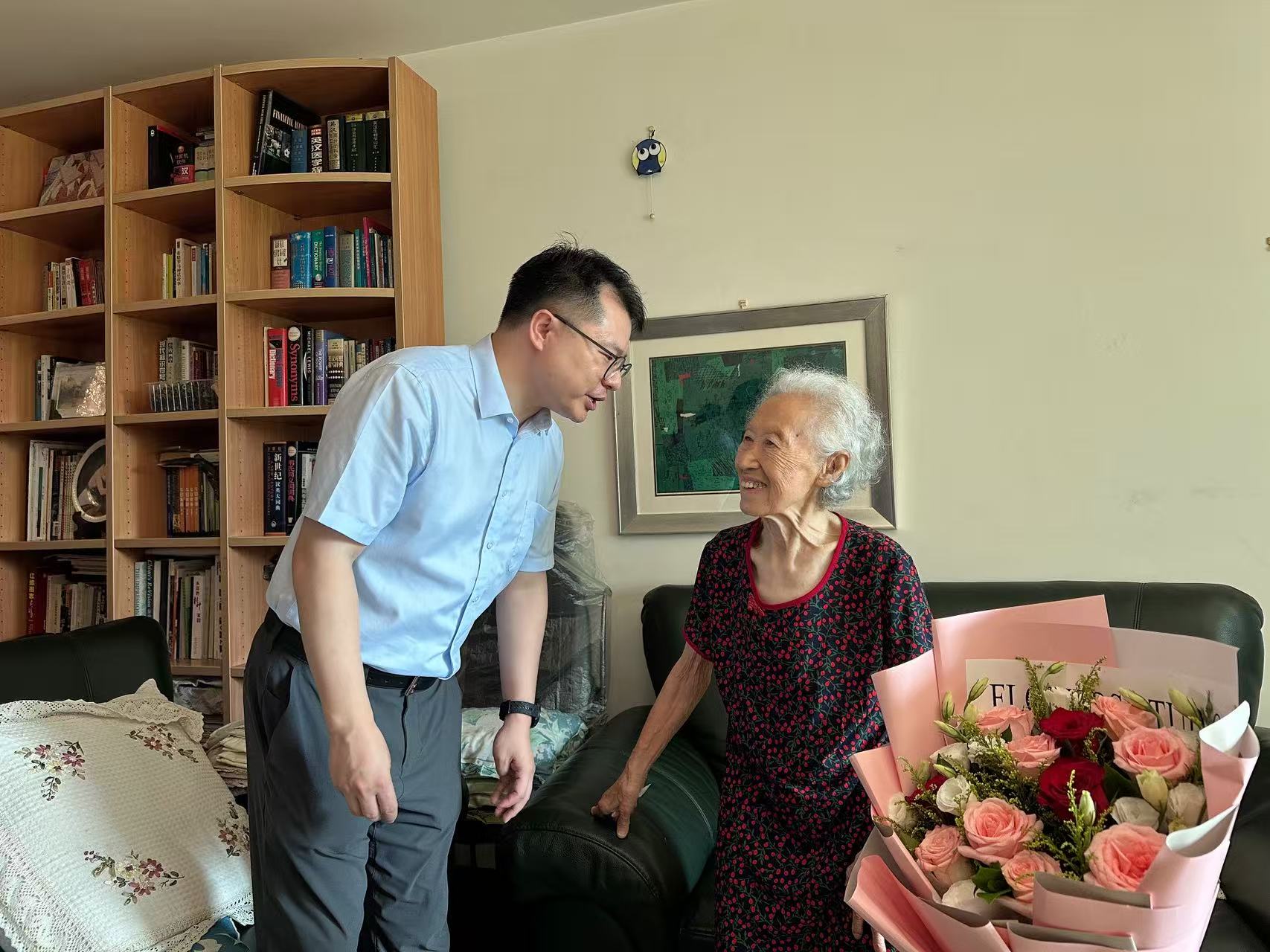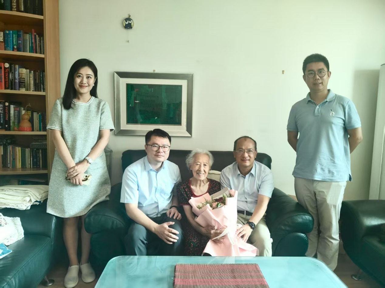 2025年9月10日,在第四十一个教师节来临之际,yl23455永利经理赵忠、党委书记陈姚、党委副书记兼纪委书记郭瑜、社会保障系主任白晨,看望慰问95岁高龄的离休教授孙光德教授。此次慰问不仅传递了公司对老一辈学者的敬意与关怀,更围绕老龄化社会服务创新、学科传承等议题展开深入交流,彰显了公司“走新路、育新人”的使命担当。