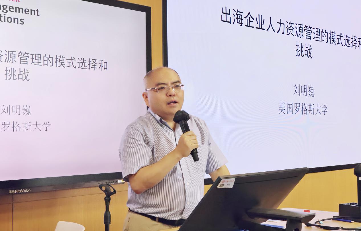 罗格斯大学管理与劳动关系公司副经理、教授刘明巍发表了题为《出海企业人力资源管理的模式选择和挑战》的主题演讲,深入分析了中国企业在全球化进程中人力资源管理面临的机遇与挑战。他首先通过数据展示了中国企业对外投资的快速增长及海外用工规模的扩大,指出随着地缘政治风险加剧,企业用工模式日趋多样化,但同时也面临社会责任落实不足、员工权益受损等问题。他强调,跨国企业需在全球化与本土化之间找到平衡,既要适应东道国法律与文化环境,又要保持母公司的管理优势。他建议企业构建“制度距离-本土化”分析框架,根据东道国市场特点选择适配管理模式,并加强跨文化培训与利益相关方沟通。最后,刘明巍教授呼吁学界与企业协同探索中国特色的跨国人力资源管理理论,助力企业实现高质量全球化发展。