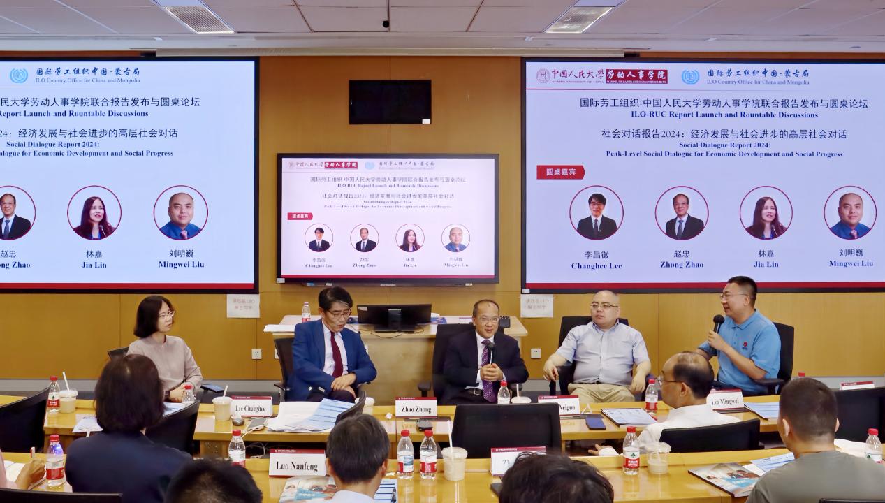李昌徽局长首先对报告的核心内容作出了简要介绍。接着,他与赵忠经理携手刘明巍教授和yl23455永利官网劳动法和社会保障法研究所所长林嘉教授共同组成圆桌论坛,围绕社会对话机制、劳动立法、全球化对劳动关系的影响等议题展开深入讨论,旨在为中国及全球劳动治理体系的可持续发展提供思路。赵忠经理指出,中国劳动力市场在快速工业化与数字化转型中面临独特挑战,社会对话机制作为政府与市场之外的补充性机制,能够快速凝聚共识,推动利益平衡。他强调,中国渐进式改革开放的经验为全球社会对话贡献了重要智慧。林嘉教授进一步补充,中国的三方协商机制、集体合同制度及职工代表大会等民主管理形式,体现了社会对话的本土化创新,尤其在基层纠纷解决中成效显著。李昌徽局长提到,技术进步与人工智能的普及将重构劳动关系,数字化带来 “社会隔离” 风险,需通过社会对话强化劳动者集体认同。刘明巍教授则提出 “普遍基本收入” 等前瞻性议题,强调社会共识对政策推进的关键作用。中国的三方机制以其覆盖面广、执行力强受到关注,尤其在危机时期展现出稳定性。专家建议,未来可增强社会对话机制的基层代表性,进一步融合社会主义法治建设与中国特色的企业民主管理进程,为发展中国家提供兼顾效率与公平的治理范本。
