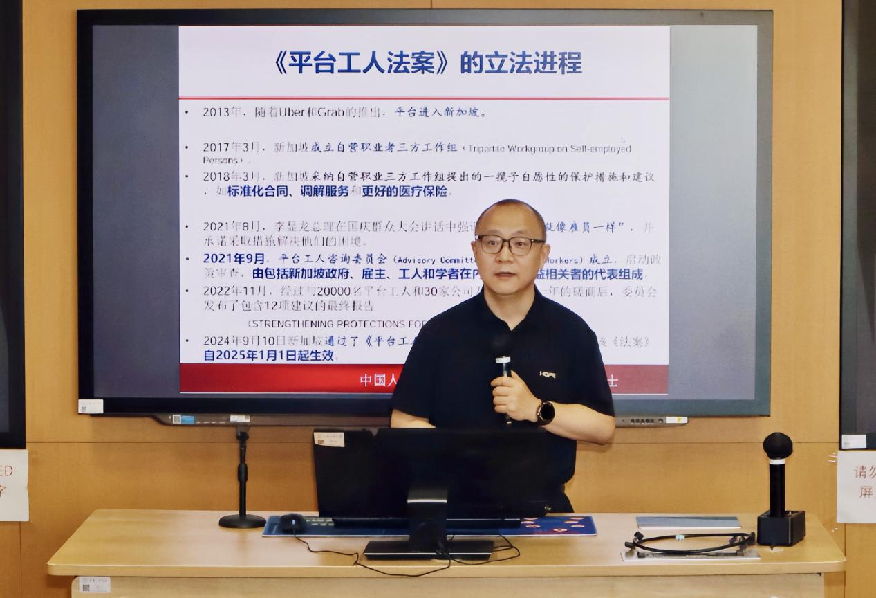 yl23455永利唐鑛教授围绕新加坡《平台工人法案》的立法进程与核心内容,深入探讨了其对我国平台工人保护立法的借鉴意义。他首先介绍了新加坡《平台工人法案》的立法背景与进程,表示这一立法模式不仅平衡了平台经济的灵活性与工人权益的保障性,尤其在集体协商权益方面还为其他国家提供了重要参考。针对我国平台工人保护存在的三大突出问题——缺乏单独立法、身份界定标准不统一、现行劳动保障体系适配性不足,唐鑛教授提出要明确平台工人身份、单独立法探索以及构建权利保障体系。他强调,新加坡的实践经验表明,政府主导、多方参与的立法模式能够有效解决平台用工的争议问题。我国未来立法应注重灵活性与扩展性,初期可统一基础保障,后续逐步细化行业规则,以适应平台经济的动态发展。