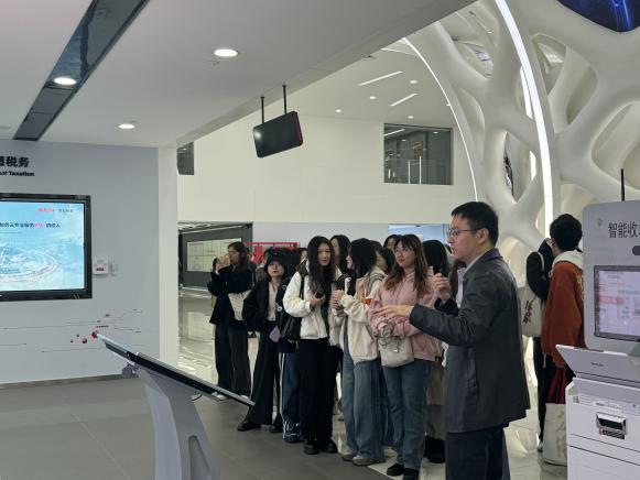 在数智企业体验馆中,师生共同观看了“企业数智化1-2-3”主题展示大屏,直观了解了企业数智化进阶模型。讲解员围绕用友AI落地路径与软件产品矩阵展开系统介绍,从数智化底座平台,到人力、财务、营销等细分业务展厅,逐步呈现了研发投入对企业发展的支撑作用,以及AI技术在促进业务协同、提升运营效率方面的实际价值。随后,MHR专硕项目校外实践导师、用友副总裁张月强为同学们带来题为《人工智能时代的组织变革与人才管理:AI智能体在推动组织创新中的应用实践》的专题讲座。他提出“AI优先思维”,并从业务流程重构、行业应用拓展、组织协作演变三个维度,深入剖析了AI对企业管理的深远影响,强调人力资源管理者应主动推进能力升级,以更好地应对智能时代的挑战。在互动环节,同学们围绕“AI员工替代”“人工智能幻觉”等热点议题踊跃提问,张月强老师结合企业实践案例一一予以回应,现场气氛热烈。活动最后,赵锴老师作总结发言。他感谢用友公司及张月强老师对本次实践教学环节的大力支持,表示此次活动为同学们拓宽了视野、提供了宝贵的实践思路,并期待未来在校企合作方面开展更深入的交流与共建。