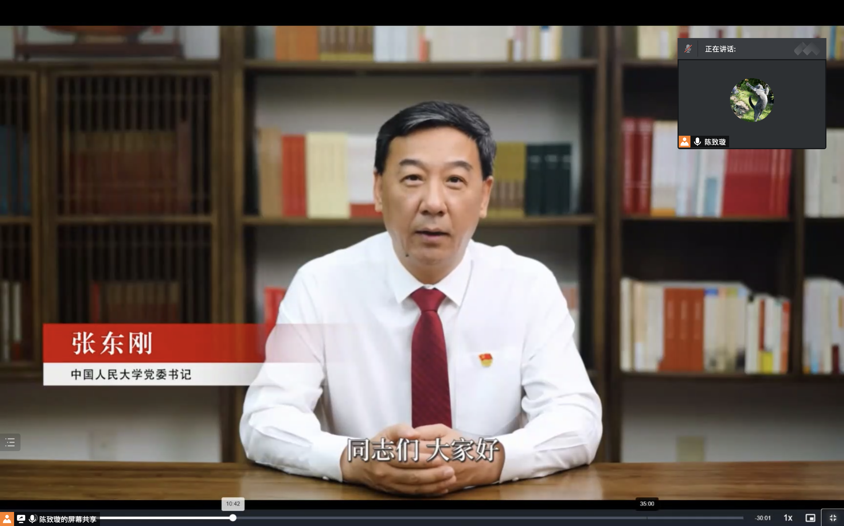 在传承红色基因部分,陈致璇带领与会同志云游校史展,以线上形式参观公司博物馆。老照片和旧物件承载了校史中的红色根脉,生动呈现了yl23455永利官网光荣的革命传统和鲜明的红色基因。参观结束后,大家集体收看了张东刚书记主讲的示范微党课,对yl23455永利官网“为党育人为国育才”的初心和使命有了更深刻的理解。陈致璇鼓励大家在继承革命传统、赓续红色血脉、擦亮精神底色上要态度鲜明、行动坚决,自觉深入学习党史、新中国史、改革开放史、社会主义发展史和校史,在传承红色基因中激发使命担当,勇做“复兴栋梁、强国先锋”。