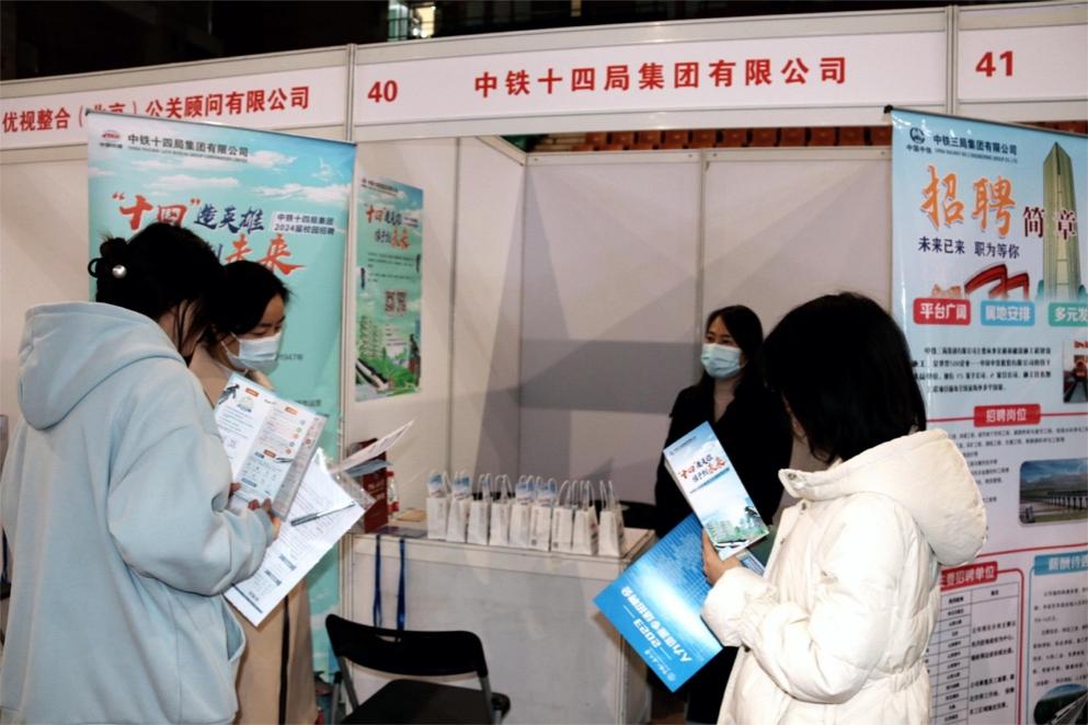 招聘会现场,来自中建六局华东建设、中建七局地产集团、中建八局浙江建设、中建城市建设发展、中铁三局集团、中铁十四局集团、中国建筑第五工程局、中交一公局海外分公司、中交第二公路工程局、中国电子科技集团公司第五十四研究所、电力规划总院、北京市政工程设计研究总院、中国通号研究设计院、国投云南新能源、腾讯公司、普华永道、北京易光淘网络技术、泸州老窖、梅花生物科技、北京国科军友工程集团、北京华夏建龙矿业科技、锐捷网络股份、牧原食品股份、中国恩菲工程、北京睿正企业管理咨询、双胞胎(集团)、北京长城企业战略研究所、歌尔股份、杭州天扬机械、北京四方继保自动化、北京理想汽车等各行各业45家用人单位的招聘人员与公司人力资源管理相关专业员工开展了积极有效的交流沟通。