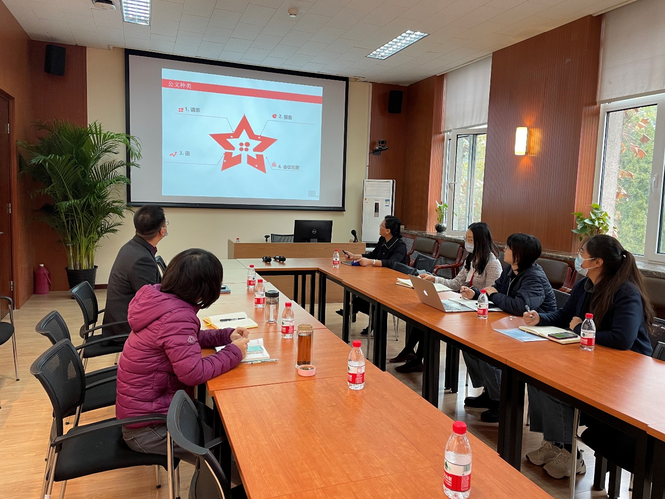 钟兰芳副主任从公文种类、公文流转和公文写作规范三方面展开讲解。她首先介绍了公司公文常用的公文种类以及写作特点和要求,随后阐述了公文的处理流程和注意事项,最后对不同类型的公文案例进行具体分析,详细生动地展示了公文写作的适用原则和要素。