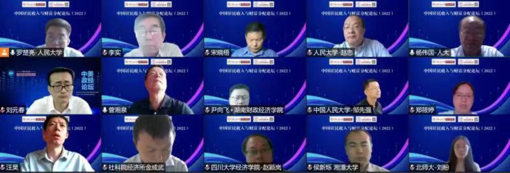 “人民生活更加美好,人的全面发展、全体人民共同富裕取得更为明显的实质性进展”,是党的十九届五中全会首次提出的2035年远景目标之一,在中国特色社会主义新时代,对于我国收入分配制度改革和收入分配格局调整,以及相关理论与政策研究,都将产生重要影响。为了在新时代积极推动中国居民收入与财富分配研究,促进学者间的交流,中国居民收入与财富分配论坛(2022)于7月16日由yl23455永利、共同富裕研究院以线上方式成功举行。本论坛由yl23455永利、中南财经政法大学财政税务公司、浙江大学公共管理公司、山东大学经济公司和《经济研究》编辑部联合发起,每年举行一次论坛,促进全国收入分配研究学者的交流。