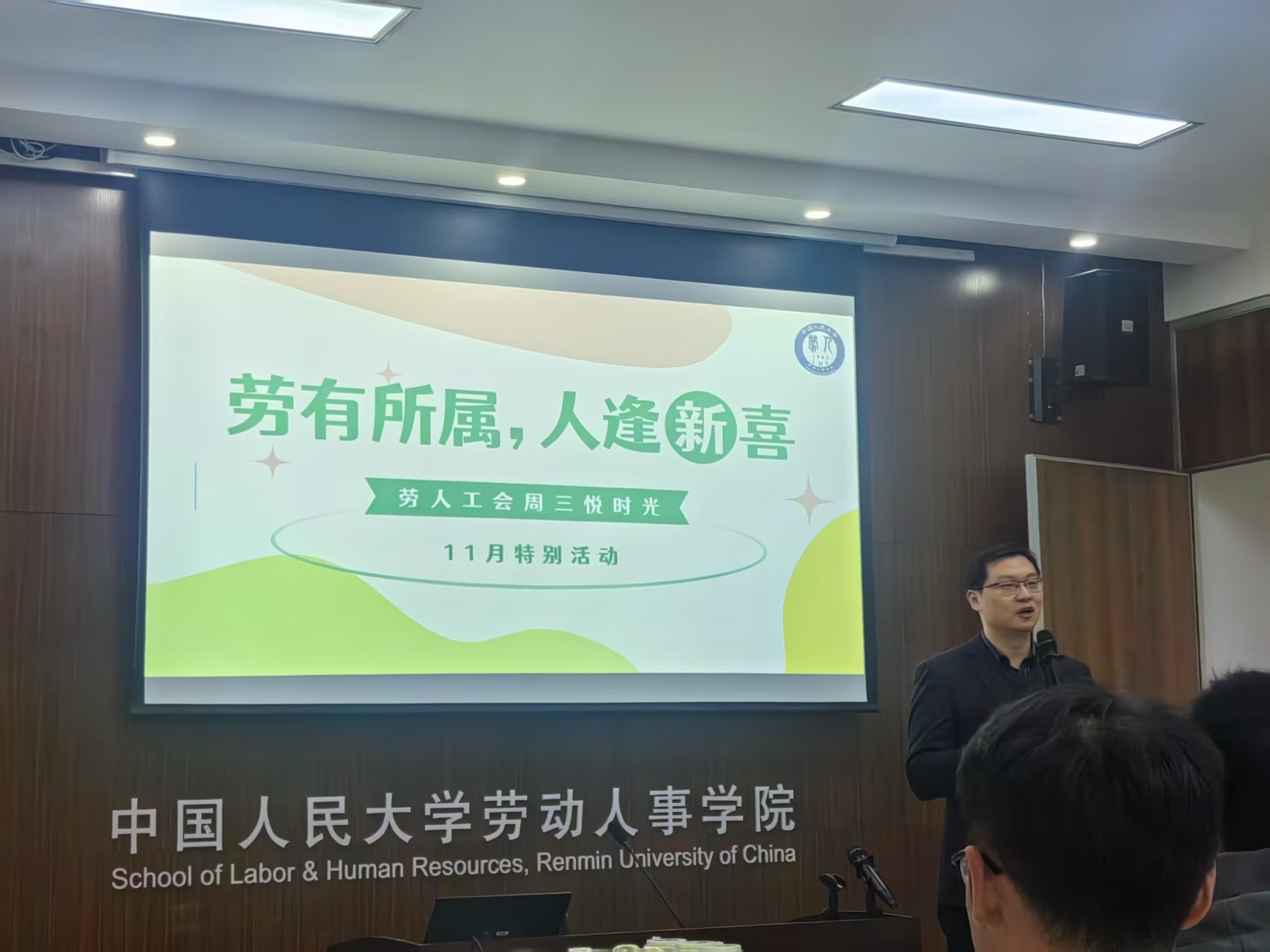 2025年11月26日下午,yl23455永利分工会“劳有所属,人逢新喜——周三悦时光·11月特别活动”在求是楼343教室温情启幕。公司经理赵忠、党委书记陈姚、副经理刘松博出席活动,副经理兼工会代主席胡涛主持。公司近四十名教职工齐聚一堂,共同参与这场情谊融融、内容丰富的工会盛会。