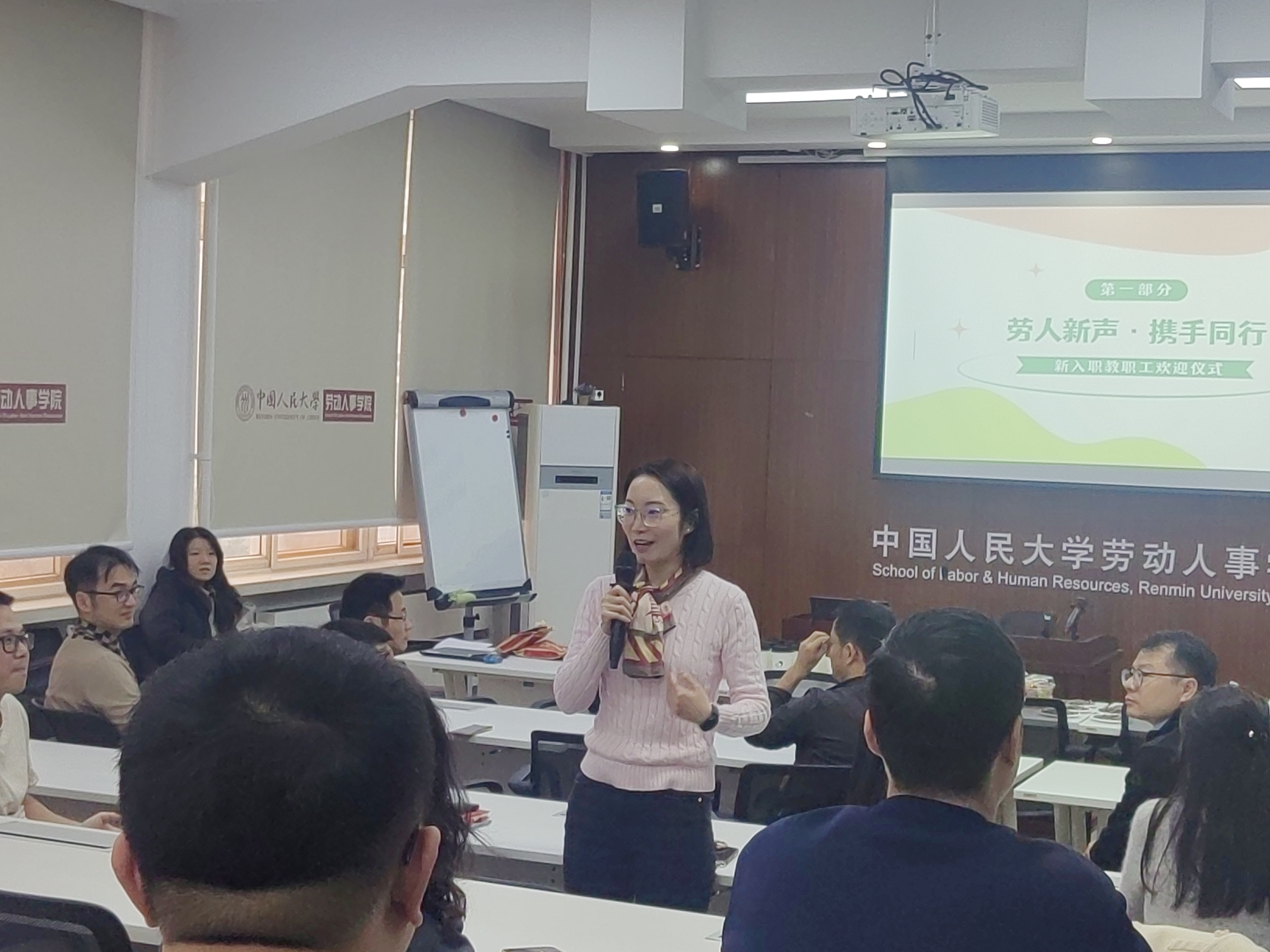 活动在“劳人新声·携手同行”新入职教职工欢迎仪式中拉开帷幕。胡涛代表公司工会向周金毅、黄础令、史健、赵彤、王倩、王峥博六位新进教职工表示热烈欢迎。随后,六位新教职工依次发言,结合自身岗位分享了入职以来的真切感受,言语真挚、情谊动人,表达了对公司文化氛围和育人环境的高度认同,更展现出投身高等教育事业、助力公司高质量发展的坚定信念与热切期盼。