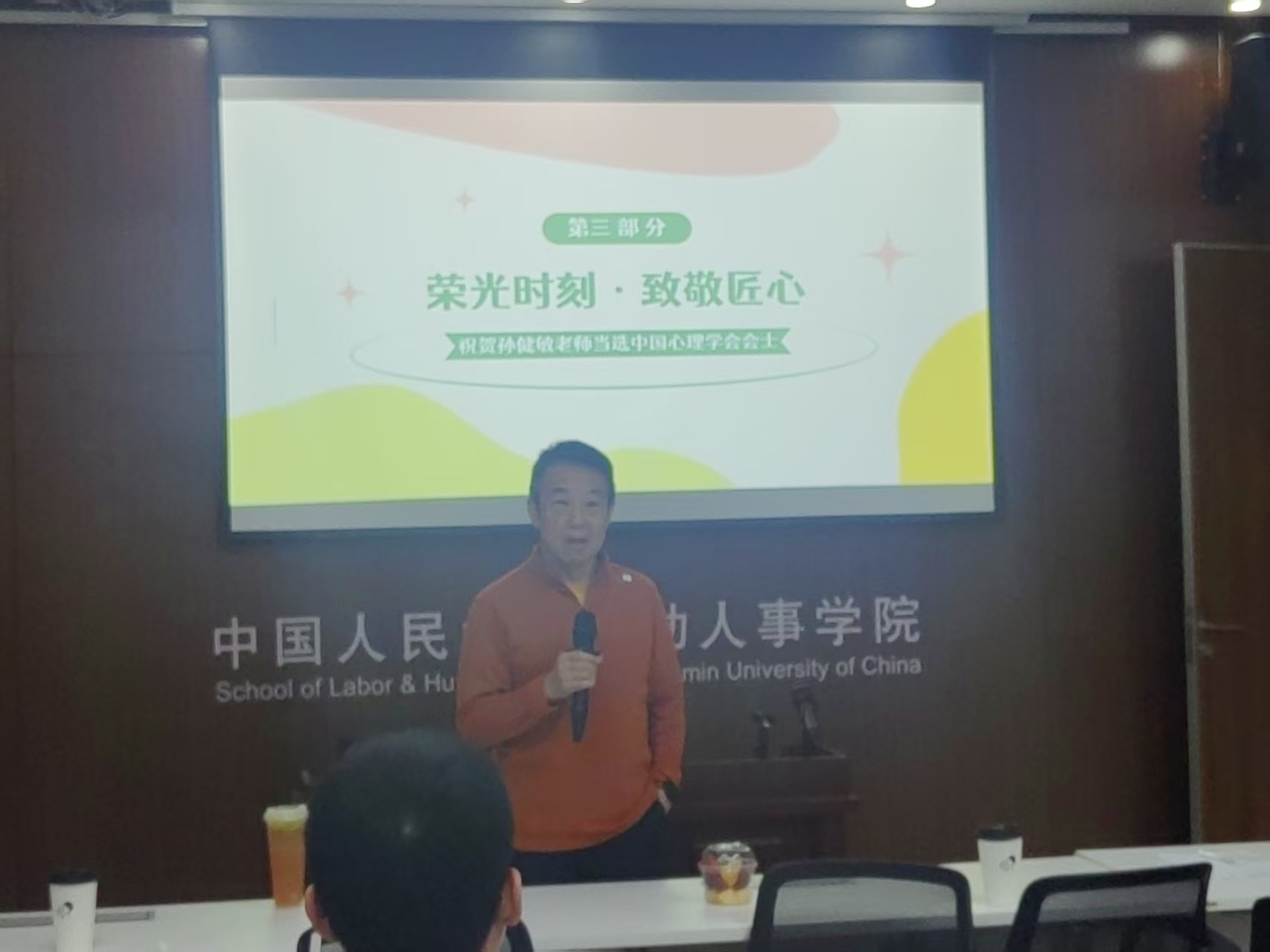 活动第三环节为“荣光时刻・致敬匠心”。全体教职工共同庆贺孙健敏老师当选“中国心理学会会士”。公司向孙健敏老师致以诚挚祝贺,孙老师也向公司表达由衷感谢。他深情回顾了在yl23455永利三十余年的执教岁月,并勉励大家在专注工作的同时,不忘关怀同事、平衡生活。随后,孙老师亲手切下分工会精心准备的庆祝蛋糕,个人荣誉与集体喜悦在此刻交融,现场洋溢着温馨与感动。