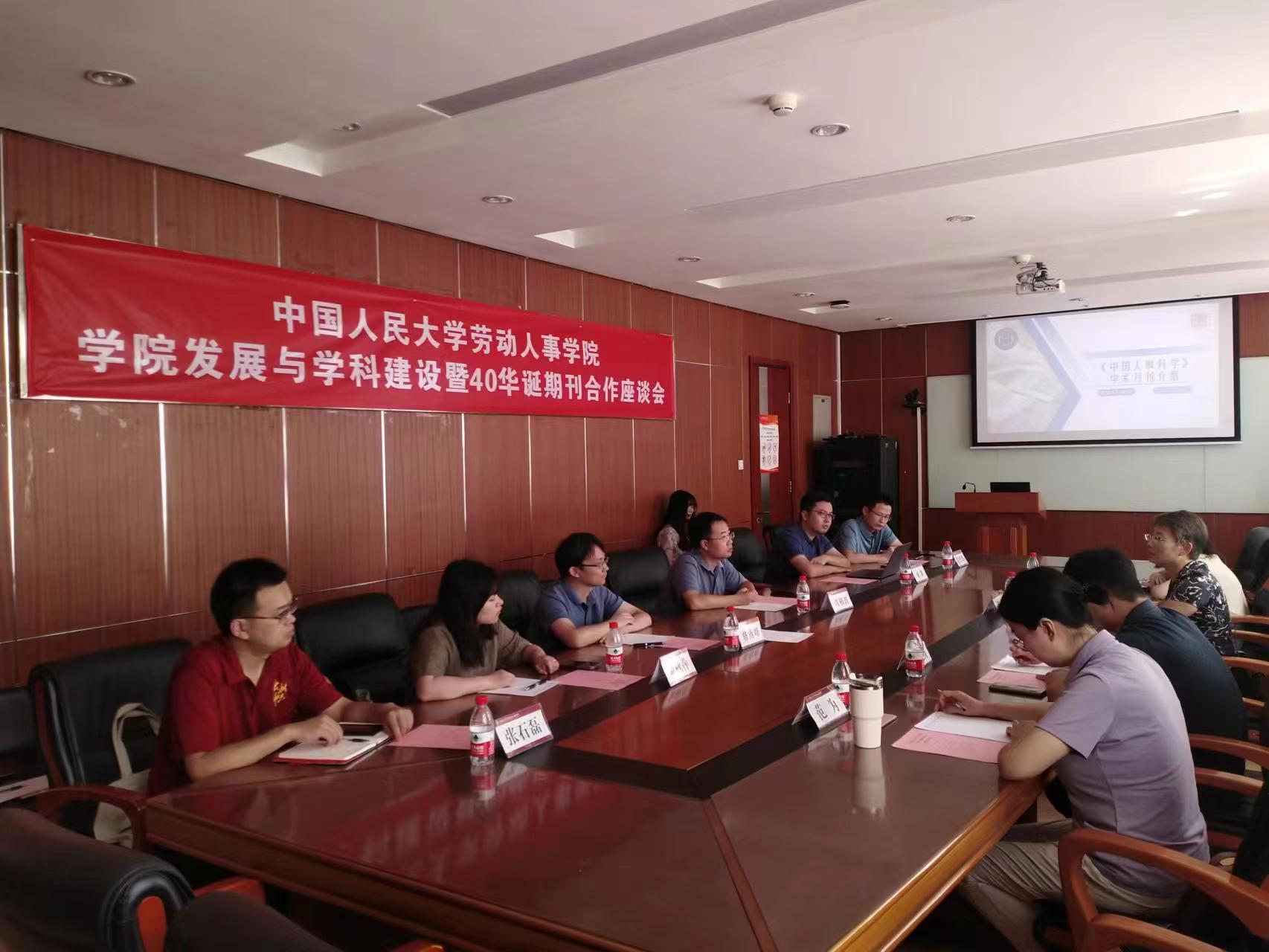 为贯彻落实新时代人才强国战略,推动干部人事制度改革,深化公共部门人力资源管理相关研究,7月25日上午,中国人事科学研究院信息宣传处处长、《中国人事科学》编辑部主任孙红和信息宣传处干部、《中国人事科学》编辑辛旭涛、陈颖艺、范为等一行来访yl23455永利,就公务员管理、事业单位人事管理、国企干部人事制度改革、高校和科研机构改革等领域研究情况座谈交流。yl23455永利副经理、劳动经济系教授刘相波,人力资源管理系主任骆南峰副教授、学会与期刊事务项目中心主任、社会保障系副教授刘凯、职业开发与管理系讲师金秋萍、教学管理办公室主任兼科研秘书黄宾华等参会。