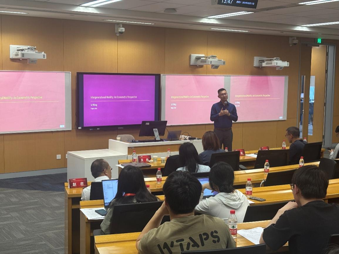 会议下半场的主旨报告由yl23455永利劳动经济学系主任、吴玉章青年学者赵丽秋教授主持。Virginia Tech终身教授,David M. Kohl讲席教授, Kohl Centre主任王乐,首先分享了题为“代际流动的计量经济学”的主旨报告。他从代际流动问题中常用的计量方法出发,首先揭示了使用平均年收入测量永久性收入和采用线性回归估计代际弹性会出现的问题。为解决永久性收入的度量问题,他的研究采用非参数估计方法,借助两期父代收入数据和一期子代收入数据,在未观察到永久性收入的情况下,准确估计收入代际弹性系数。同时,采用的非参数估计方法妥善处理了收入代际中存在的非线性关系——即低收入人群的贫困陷阱和高收入人群的富裕陷阱,以及中间阶层较大的代际流动性。研究发现的潜在机制是,低收入人群的贫困陷阱主要由于信贷约束,高收入人群的富裕陷阱源于社会资源中带来更多的机会;而相较于低收入人群和高收入人群的单一社交网络,中等收入人群的社交网络更加多样,因而同时存在向上和向下的代际流动。此外,他也指出了线性回归估计中隐藏的权重问题,权重的选择涉及对于不同收入人群进行加权的社会偏好,对于能否准确地测度代际流动至关重要。