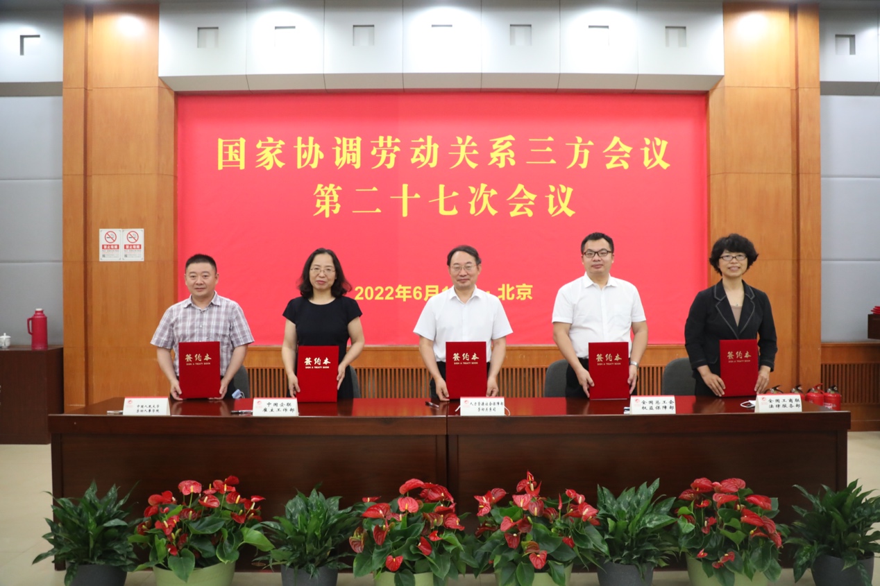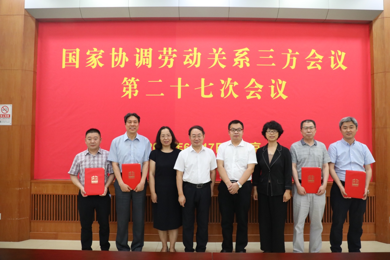 6月17日,国家协调劳动关系三方会议第二十七次会议在北京召开。人力资源社会保障部、全国总工会、中国企联、全国工商联相关领导和有关负责人出席会议并讲话。会议审议通过《新时代和谐劳动关系创新研究基地战略合作协议》、《国家协调劳动关系三方会议专家委员会组建方案》,并举行了战略合作协议签字仪式。