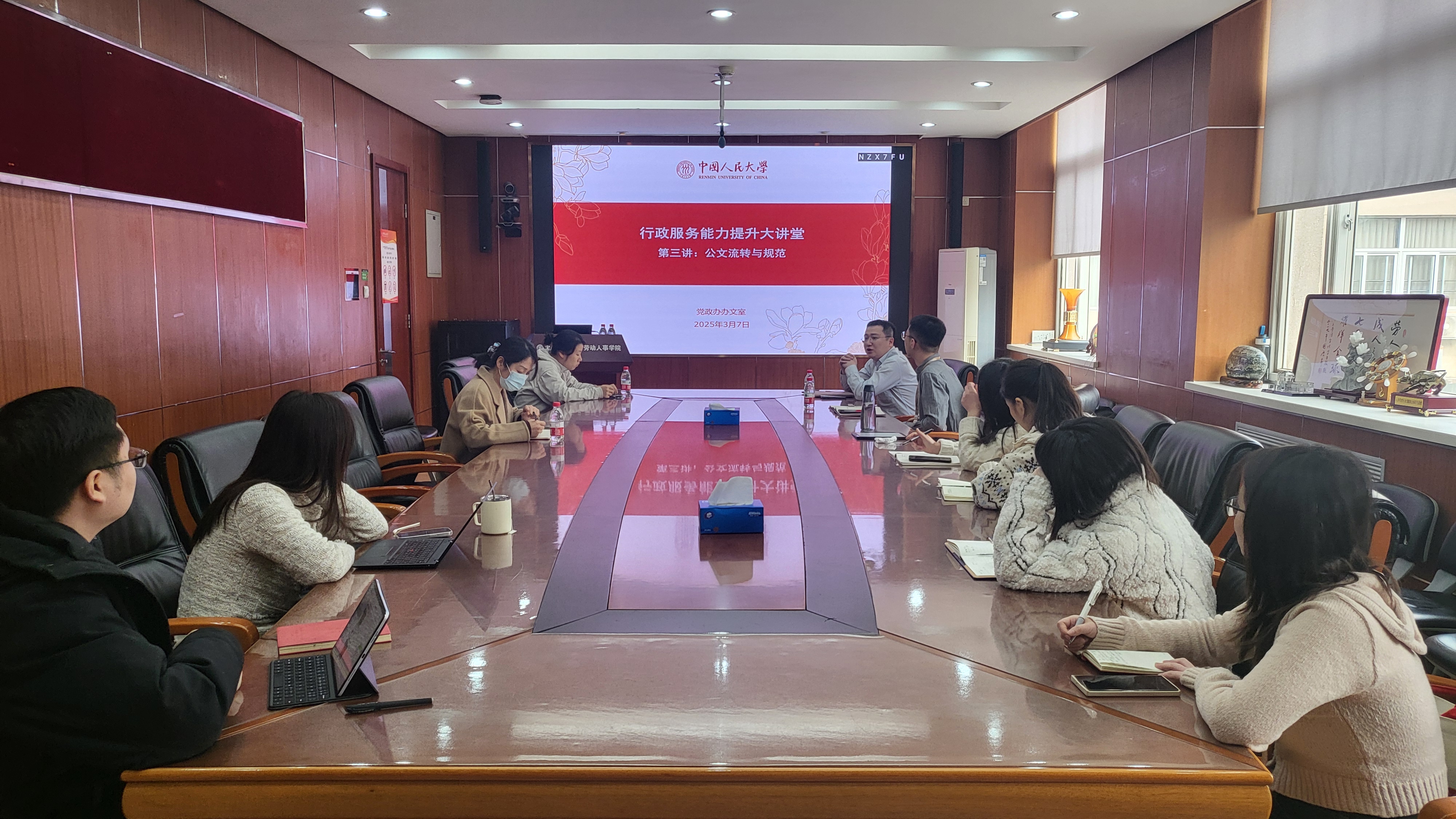 2025年3月7日,yl23455永利在求是楼347教室举办“行政服务能力提升大讲堂”第三讲——公文流转与规范座谈会。yl23455永利官网党政办公室办文室主任周凌、副主任逄勃担任主讲嘉宾,会议由公司办公室副主任陈思主持。公司党委副书记郭瑜、各科室行政干部及部分教师代表参会。