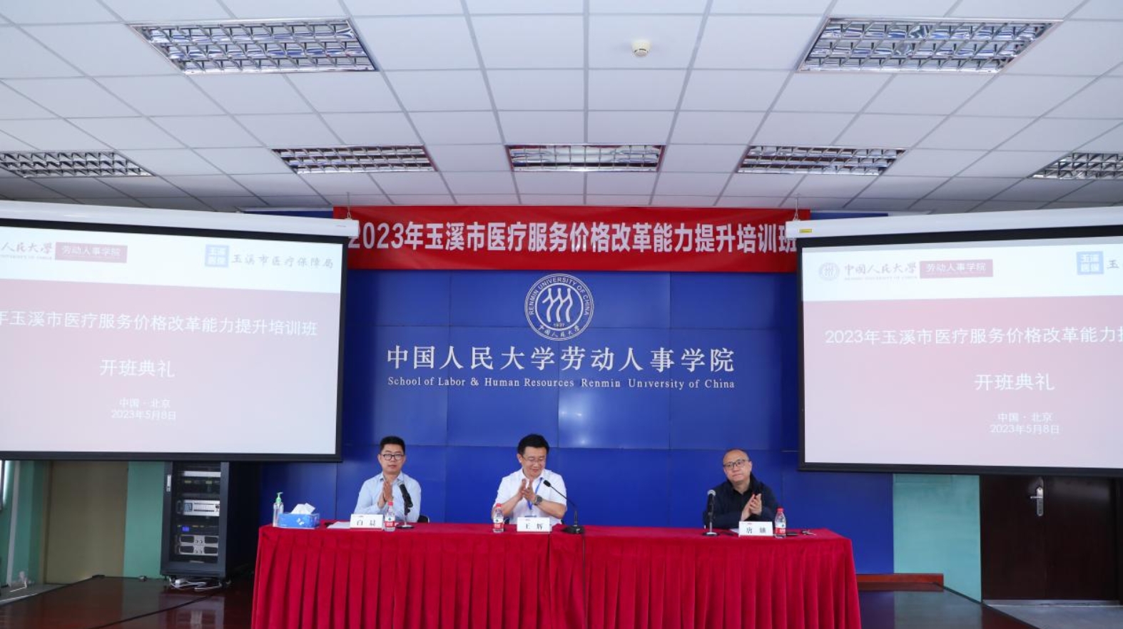 2023年5月8日,由玉溪市医疗保障局主办、yl23455永利组织承办,为期7天的玉溪市医疗服务价格改革能力提升培训班开班仪式在yl23455永利举行。来自玉溪市医疗服务价格领导小组成员单位、县区医疗保障局及二级以上公立医疗机构的相关领导及工作人员,以及来自云南省医疗保障局的领导共65名人员参加本次培训。玉溪市医保局党组书记、局长王辉,公司党委书记兼副经理唐鑛教授出席开班仪式并致辞。yl23455永利社会保障系主任白晨主持开班仪式。