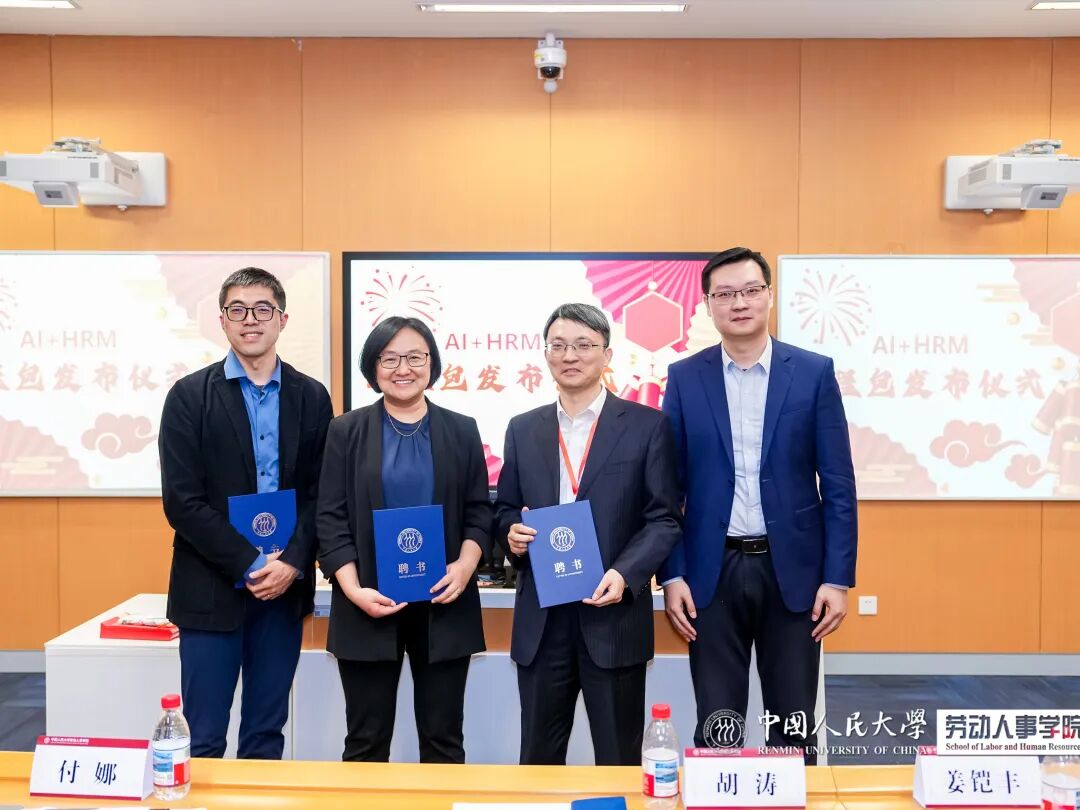 圆桌对话结束后,参会领导、专家学者、企业嘉宾共同见证AI+HRM课程模块发布仪式。发布仪式上,胡涛副经理分别为付娜教授、姜铠丰教授、骆南峰教授颁发yl23455永利人力资源数智化课程荣誉顾问证书,并为马静老师、刘洁老师颁发特聘技术专家证书,进一步彰显了课程包在学术与技术两端的协同优势。