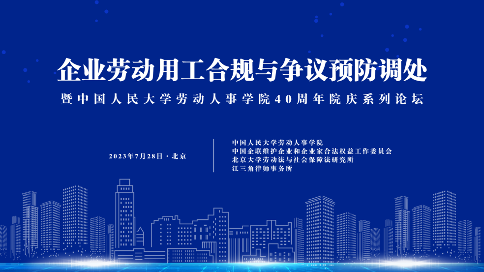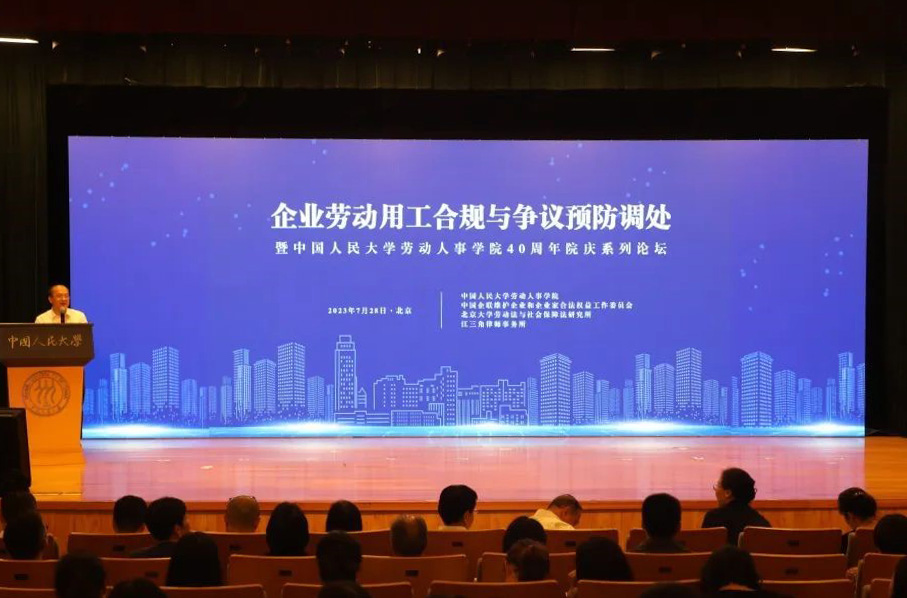 7月28日下午,由yl23455永利、中国企联维护企业和企业家合法权益工作委员会、北京大学劳动法与社会保障法研究所、江三角律师事务所联合主办的“企业劳动用工合规与争议预防调处论坛——暨yl23455永利40周年院庆系列论坛”成功举办。来自劳动法和人力资源管理领域的专家学者、律师、企业代表等300余人受邀来到公司参与本次论坛,交流信息、碰撞观点、分享经验。