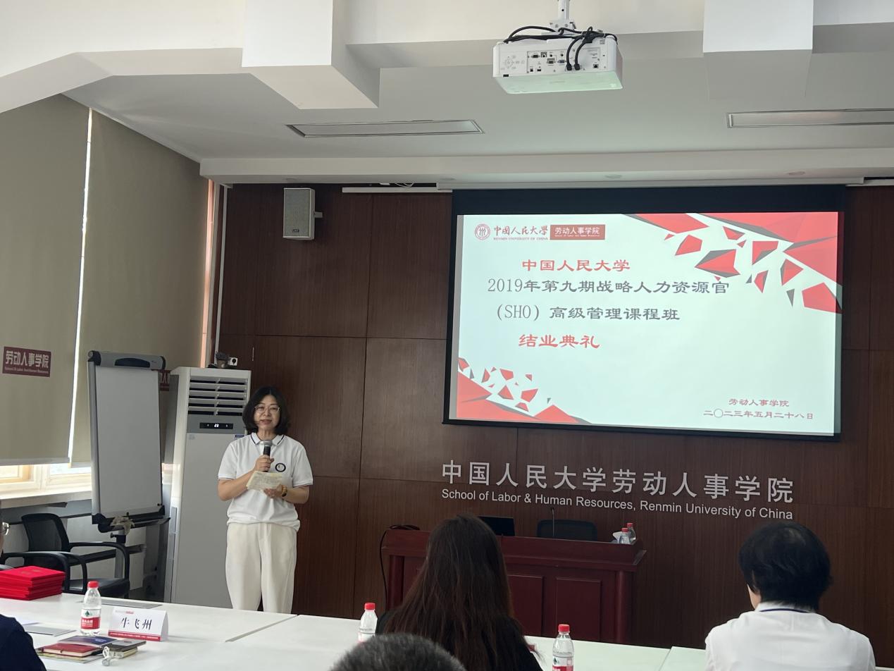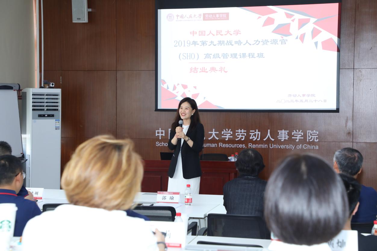 2023年5月28日,第九期yl23455永利官网战略人力资源官(SHO)高级课程班结业典礼在求是楼343隆重举行。yl23455永利副经理、纪委书记郭瑜教授出席典礼并发表讲话。结业典礼由公司人力资源与领导力开发中心高管教育部部长、SHO项目班主任张丹丹老师主持。