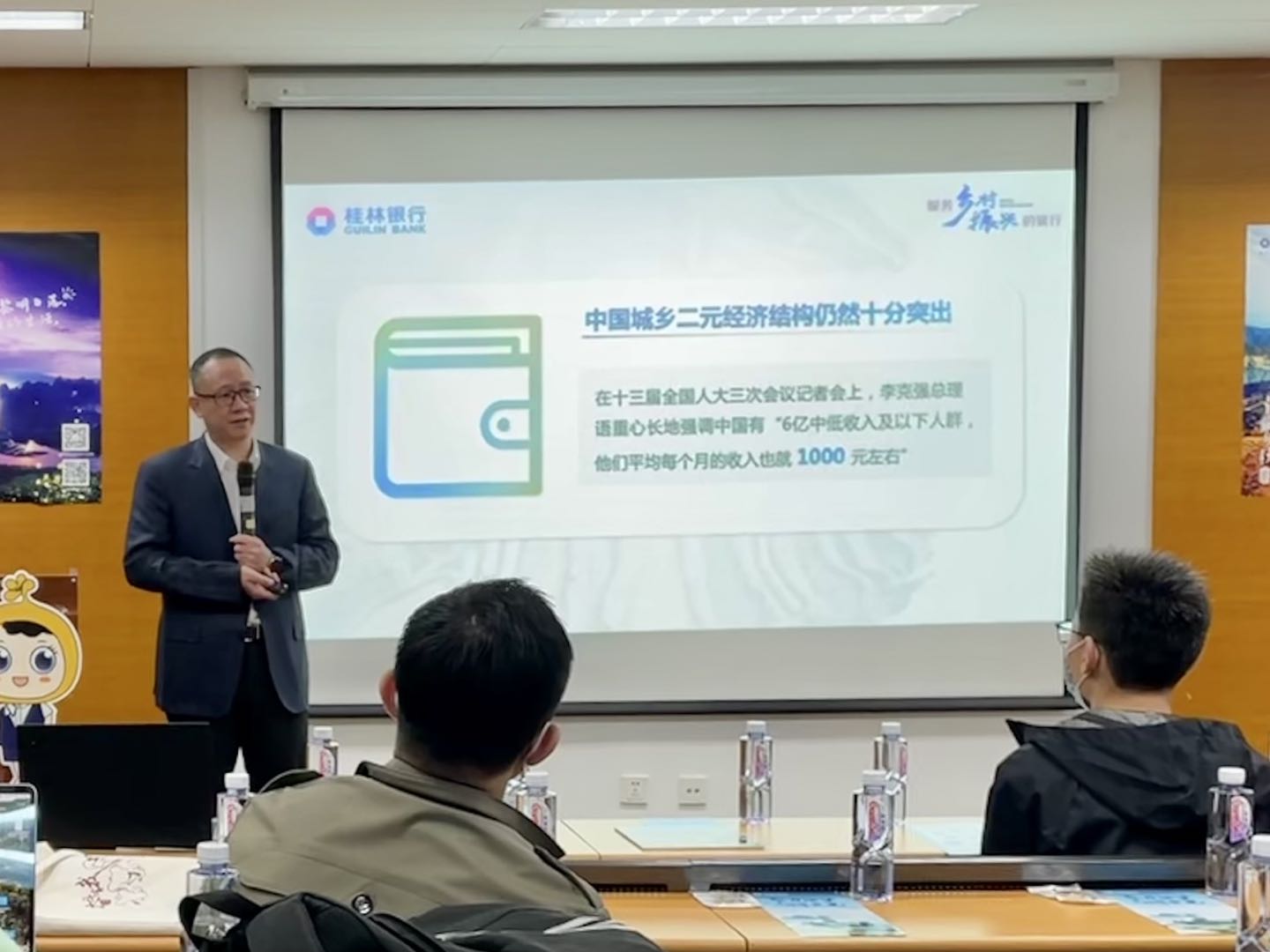 首先吴东员工为大家介绍了桂林银行的现状和未来规划。通过讲述桂林银行未来的发展战略,他为大家阐释了乡村振兴战略的重要意义和光明前景。接着,他为大家分享了自己的职业生涯案例,他提出在当今的时代,找一个值得自己为之奋斗一生的事业或方向非常重要,对事业有梦想、有追求,我们的职业生涯就不知不觉地延长了,创造的价值也是不可估量的。最后,希望未来可以和在座的同学与员工一同在波澜壮阔的乡村振兴时代洪流中书写传奇。