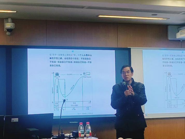 分享中,周石老师重点强调 “持续努力、德才兼备、坚守原则底线” 的重要性,特别叮嘱员工们 “要坚持每日锻炼一小时,主动学习营养健康知识,以强健体魄和饱满精神应对职业与生活挑战”。此外,他还结合 “邓宁 - 克鲁格心理效应”,解读个人认知从 “愚昧山峰” 到 “开悟之坡” 的四个阶段,引导员工们保持谦逊学习的态度,不断提升自我认知。