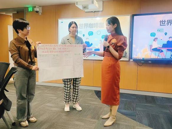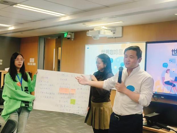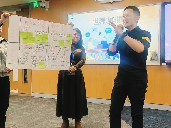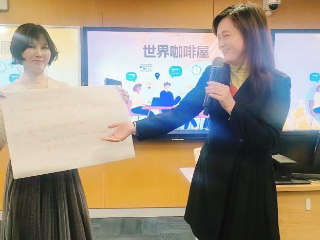 本次活动的高潮环节为 “世界咖啡屋” 互动讨论。六位经验丰富的员工担任 “摊主”,围绕 “35岁危机与职业天花板”“工作与家庭平衡策略”“人工智能在行业中的应用挑战” 等核心议题,引导现场员工分组展开深度交流。讨论过程中,思维碰撞频繁,灵感火花不断,员工们既解决了个人困惑,也挖掘出潜在合作机会。