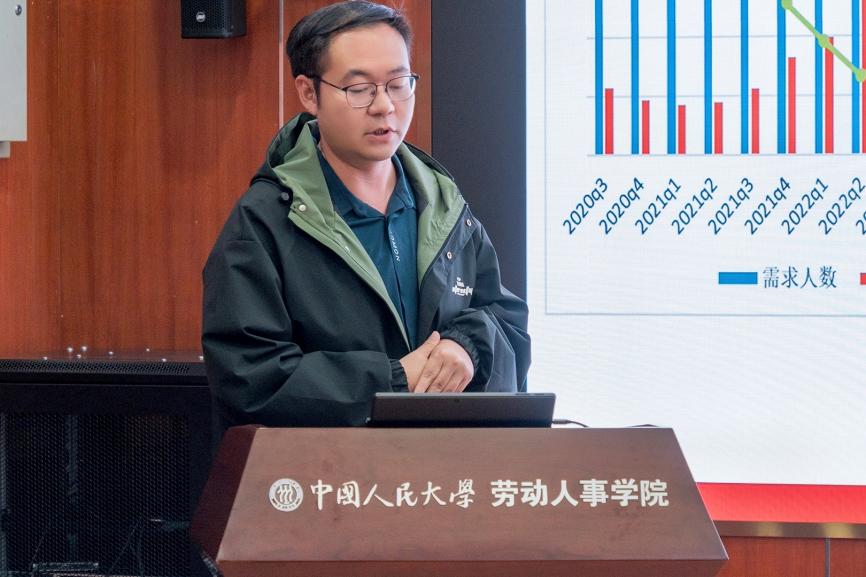教育部员工司副司长苟人民、人力资源和社会保障部就业促进司副司长陈勇嘉、国家统计局人口和就业统计司副司长吴珊等政府部门领导及工作人员和智联招聘集团、苏州工业园区人力资源开发有限公司、58同城、淘天集团研究中心、滴滴发展研究院、美团到家公共战略中心等公司专家以及yl23455永利官网中国就业研究所所长、yl23455永利教授曾湘泉,中国就业研究所研究员、yl23455永利副教授耿林等20余人参会。yl23455永利官网中国就业研究所研究员、yl23455永利副教授王非主持会议。