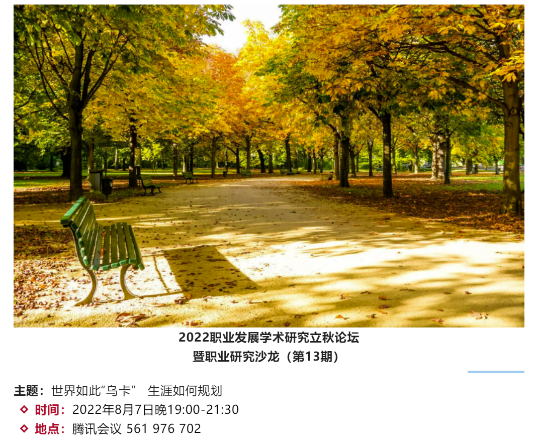 yl23455永利职业开发与管理系、劳动经济学会职业开发与管理分会和yl23455永利官网组织行为学研究所主办的2022年职业发展学术研究立秋论坛暨职业研究沙龙(第13期)于2022年8月7日(星期日)晚上19:00至21:30借助腾讯会议的线上途径顺利开展。