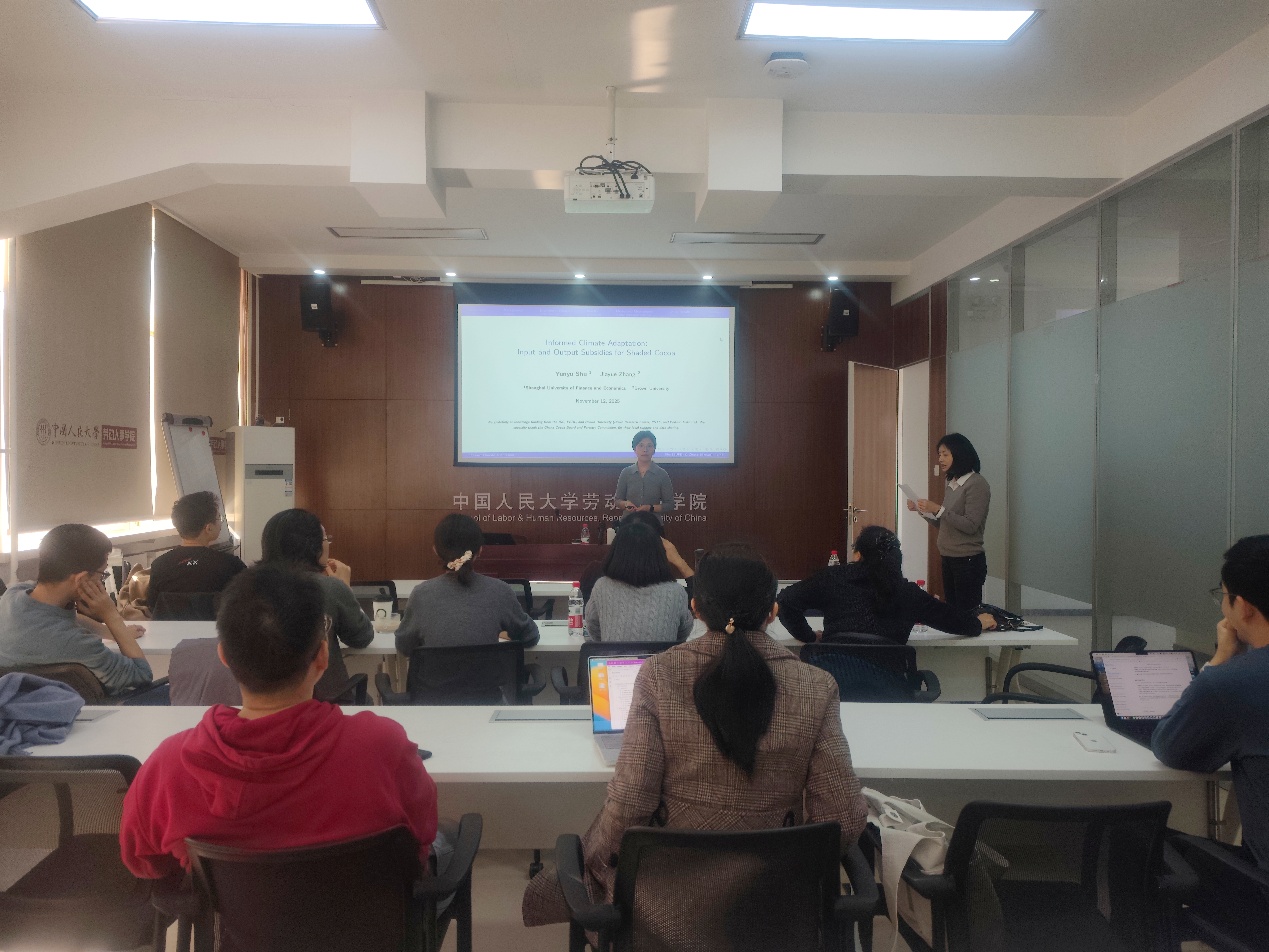 2025年11月12日下午,由yl23455永利主办,劳动经济系和中国就业研究所承办的“劳动经济学双周论坛”第226期讲座在求是楼343会议室成功举办。来自上海财经大学的殳蕴钰助理教授分享了主题为“Informed Climate Adaptation: Input and Output Subsidies for Shaded Cocoa”的研究。本次论坛由yl23455永利翁茜副教授主持,yl23455永利赵丽秋教授、王非副教授、邹先强副教授、林琳讲师、王雪凝讲师、雷子腾讲师、陈泽阳讲师以及其他校内外师生参与了此次讲座。