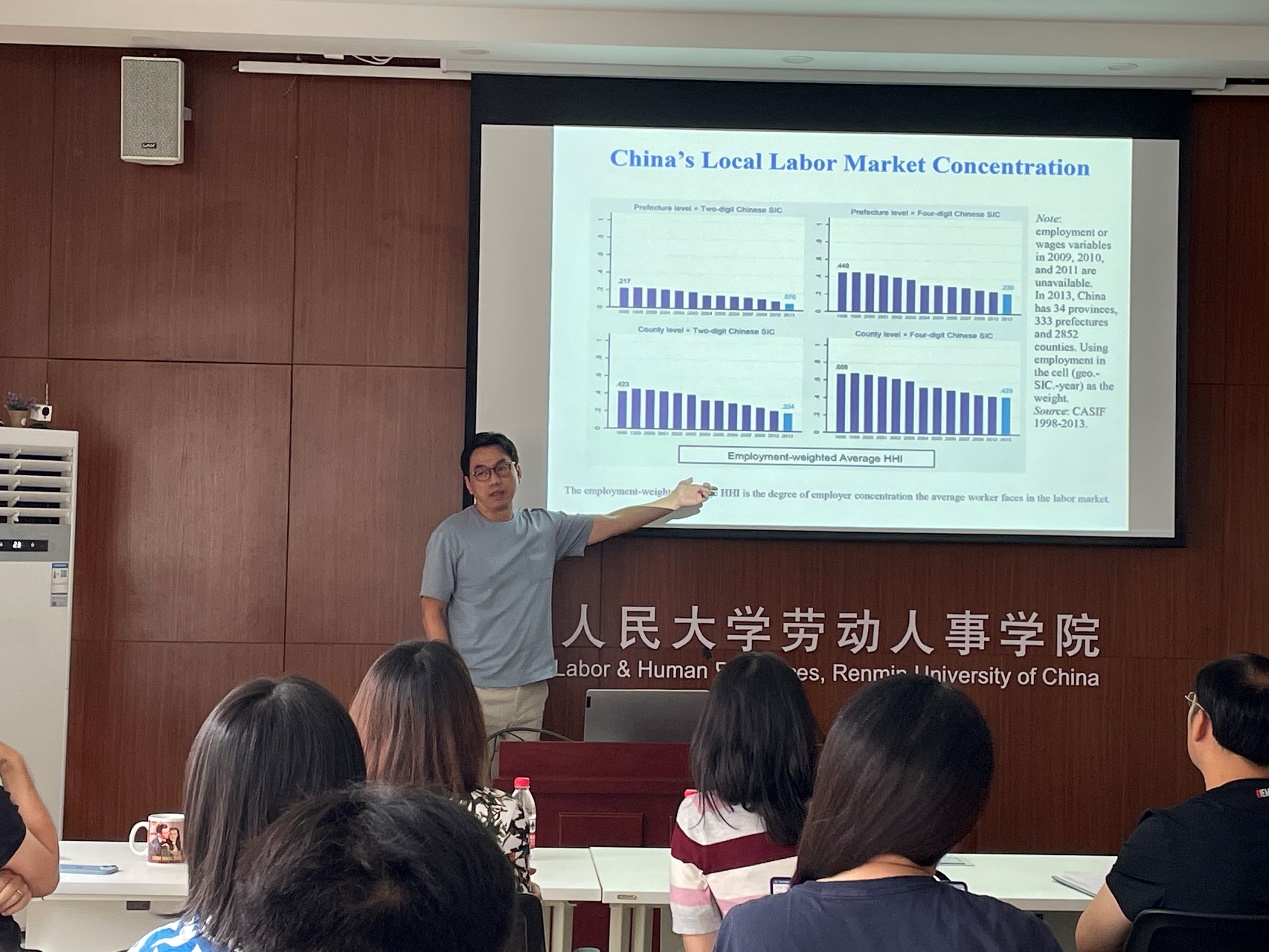 2023年6月12日下午,由yl23455永利主办,劳动经济系和中国就业研究所承办的“劳动经济学双周论坛”第191期讲座在求是楼343会议室成功举办。来自美国Bucknell大学经济系的林树明副教授分享了主题为“Competition in the Labor Market: The Wage Effect of Employer Concentration in China”的研究。本次论坛由yl23455永利赵丽秋副教授主持,yl23455永利刘宏教授、王非副教授、陈轩副教授、周广肃副教授、邹先强讲师、林琳讲师、雷子腾讲师、陈泽阳讲师,以及其他校内师生参与了此次讲座。