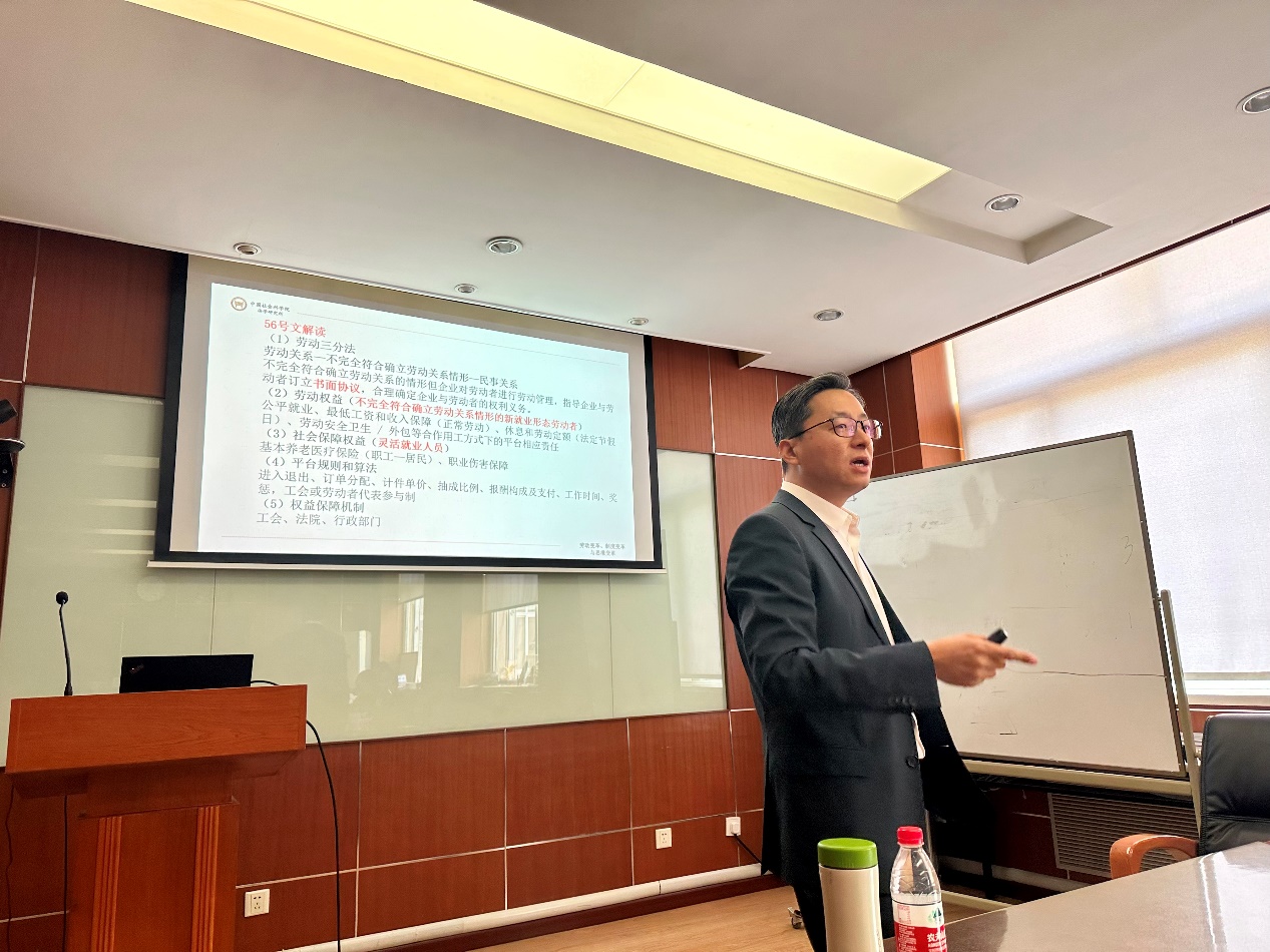 由yl23455永利主办,劳动关系系承办的“劳关天下”系列讲座于2023年4月26日(星期三)13:00点在求是楼347会议室成功举办。中国社会科公司法学研究所社会法室王天玉副主任、副研究员进行了题为《劳动变革、制度变革与思维变革》的学术分享。劳动关系系吴清军教授、张皓副教授以及多名本科和硕、博士研究生共同参加了研讨。