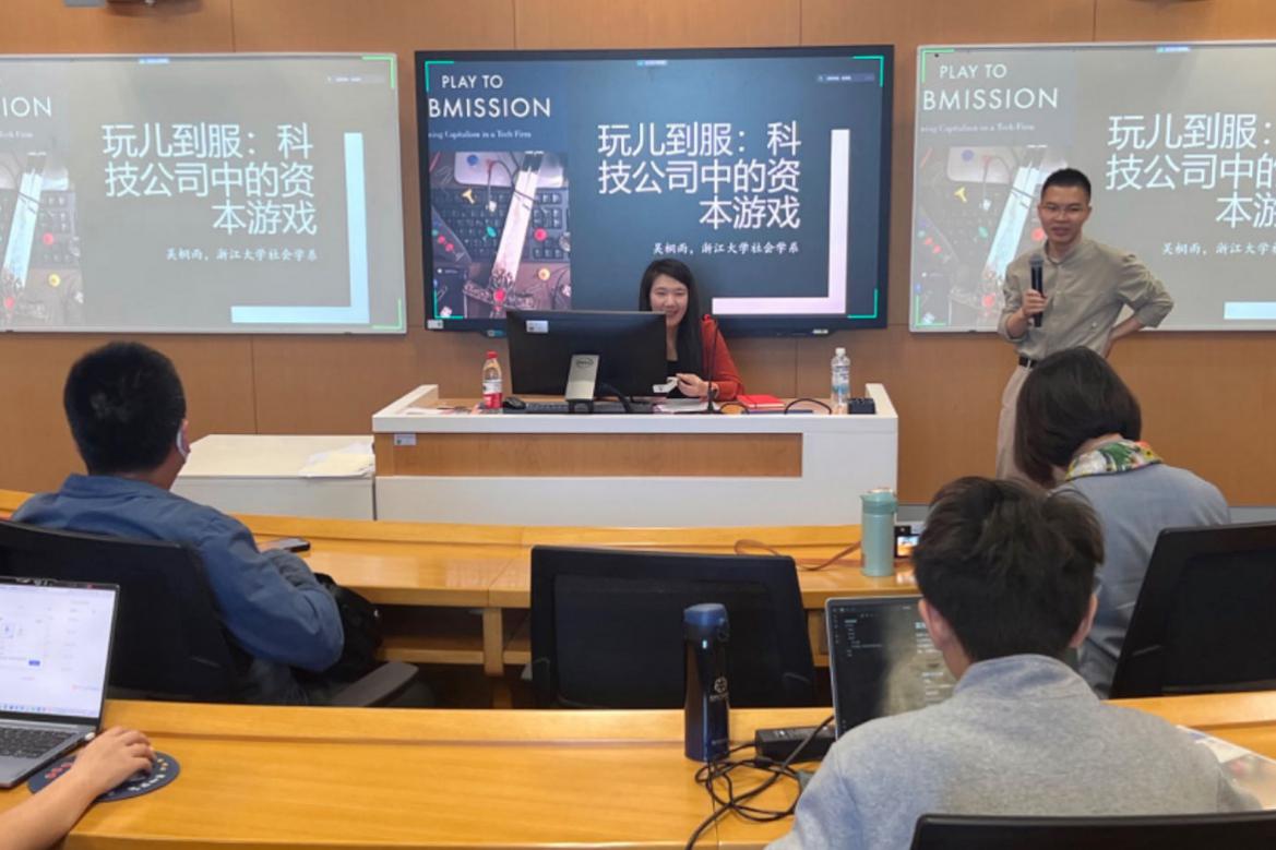 讲座主持人汪建华副教授作简要总结,他对吴桐雨老师的精彩分享表示感谢,并对其研究的田野与理论功底表达敬意。他认为吴桐雨老师的研究充分展现了民族志方法在探寻现实社会的经验迷宫、延展经典理论方面的独特魅力,认为其研究在经验的深度、田野的挑战性和理论洞见等方面都堪为国内劳工研究作品的标杆,《玩儿到服:科技公司中的资本游戏》(Play to Submission: Gaming Capitalism in a Tech Firm)一书必将成为劳工研究和海外民族志的又一部经典之作。