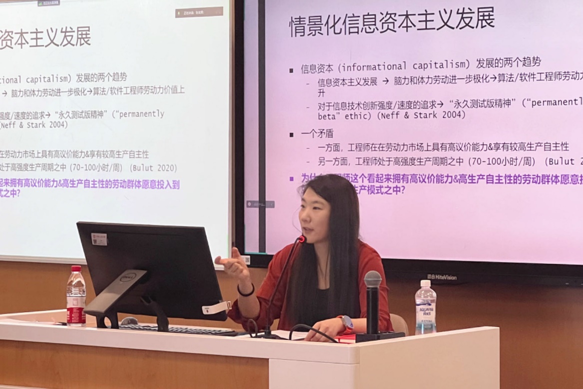 吴桐雨研究员以她即将出版的书稿《玩儿到服:科技公司中的资本游戏》(Play to Submission: Gaming Capitalism in a Tech Firm)为基础,以硅谷的软件工程师群体为例,生动细致地分析了信息资本主义时代高效率产出的劳动秩序的建立及其运作机制。她指出,现代信息资本主义的高工作强度与高不确定性与信息产业劳动者高议价能力的矛盾促使资本针对“电玩一代”员工的主体性调整劳动控制策略,创造新的劳工游戏。吴桐雨阐述了如何利用信息技术产业劳动为契机,对布洛维理论体系进行更新与改进,从而增强了该理论在解释当代社会劳动现象方面的解释力和适用性。在对其研究的进一步阐述中,她探讨了如何在高科技工作环境中构建基于逾五十种游戏的“游戏场”。她特别分析了三种主要游戏——虚拟游戏、徽章游戏和传票游戏——这些游戏是如何被嵌入不同的劳动过程中。通过这一分析,吴桐雨揭示了资本是如何利用游戏化叙事以及与电玩一代员工个体经历与主体性的耦合,从而创建一种独特的游戏化霸权体系。在讲座的最后部分,吴桐雨通过对信息资本主义体系中的多样化劳动游戏进行比较分析,推测了影响其差异化后果的两个主要因素:一是游戏在调动劳动主体性方面的潜力,二是游戏过程中劳资双方形成的利益联盟的程度。此外,她还探讨了游戏场的形成可能对软件工程师群体造成的社会性后果,展示了她作为学者的人文关怀。