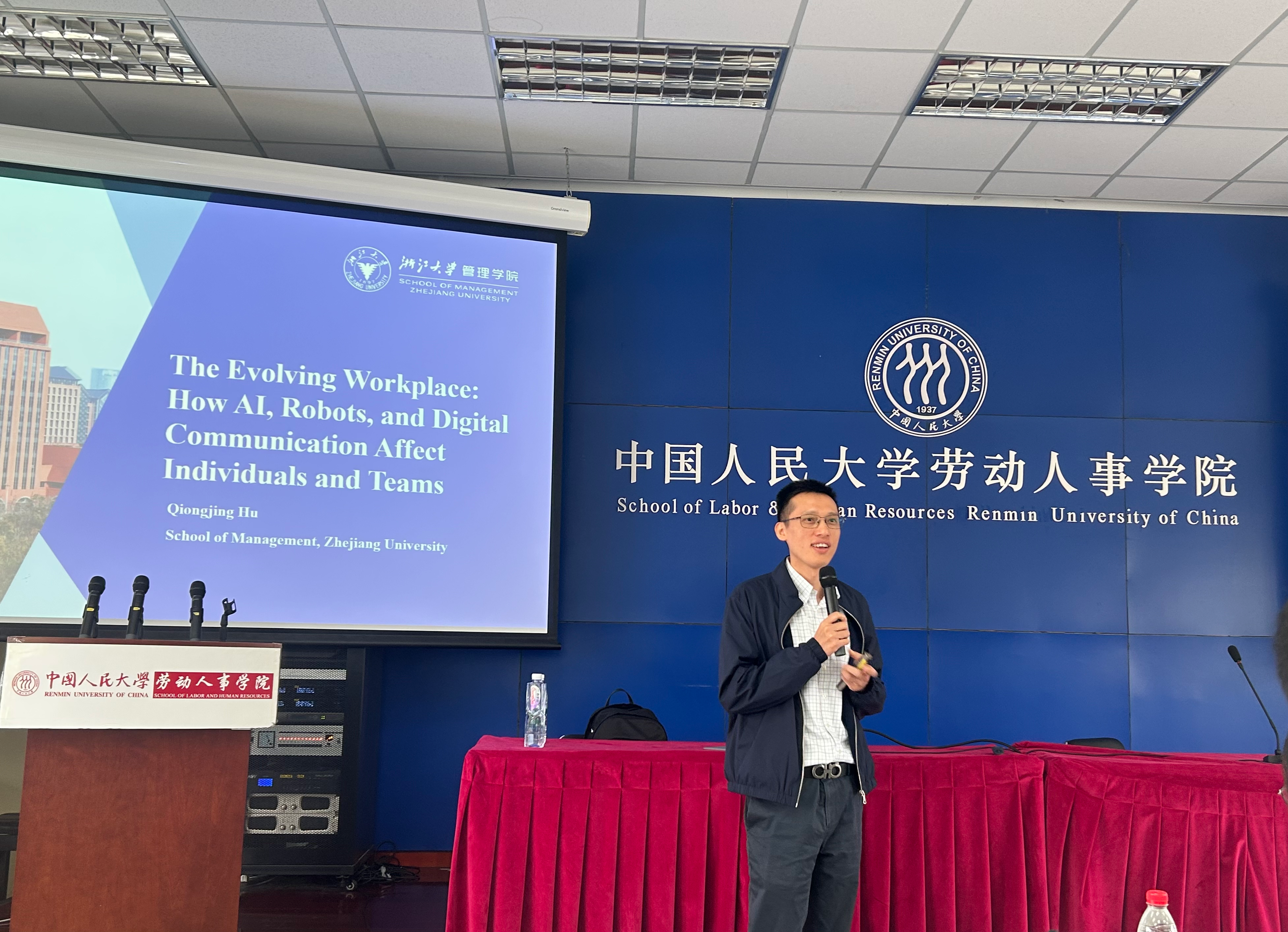 2024年10月16日,yl23455永利“人力资源管理系2024年秋季学期半月谈学术论坛”第125期讲座在求是楼440会议室成功举办。浙江大学管理公司胡琼晶副教授分享了自己正在推进的几项研究,深入探讨工作场所中人工智能、机器人和数字化协同工具中对个体与团队的影响。讲座由人力资源管理系冯雯讲师主持,来自yl23455永利的魏昕教授、骆南峰副教授、王青副教授、赵锴副教授、陈力凡副教授、陈雯讲师、毛凯贤讲师以及校内外本硕博员工积极参与了本次讲座。