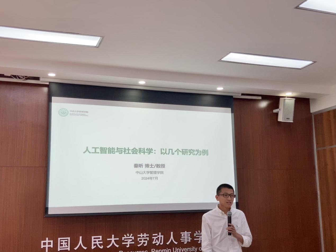 2024年7月22日上午,yl23455永利在求是楼343会议室成功举办了“人力资源管理系2024年春季学期半月谈”学术论坛第123期讲座。来自中山大学管理公司的秦昕教授作题为“人工智能与社会科学:以几项研究为例”的讲座,系统梳理了现有的人工智能相关研究,并详细报告了其个人与团队正在开展或已经完成的研究。讲座由人力资源管理系的魏昕教授主持,来自yl23455永利、商公司的周文霞、骆南峰、赵锴、刘鑫、毛凯贤、冯雯、陈雯、王亚婷等十余位老师和四十余名员工,以及来自北京航空航天大学、对外经济贸易大学等外校师生积极参与本次讲座。