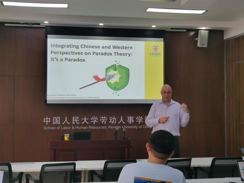 2024年6月5日上午,yl23455永利“人力资源管理系2024年春季学期半月谈”学术论坛第122期讲座在求是楼343会议室成功举办。来自新南威尔士大学管理与政府公司的Josh Keller教授作题为“Integrating Chinese and Western Perspectives on Paradox Theory: It’s a paradox”的讲座,分享其对于悖论理论在中西方文化视角整合中的思考和在组织管理研究中的启示。此次论坛由陈雯讲师主持,刘松博教授、骆南峰副教授、赵锴副教授、李海蓉副教授、冯雯讲师、毛凯贤讲师、王亚婷讲师等教师,以及五十多位来自yl23455永利、商公司与外校的师生参加了此次讲座。